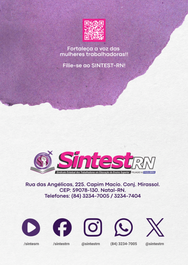Sindicato dos Estadual dos Trabalhadores em Educação no Ensino Superior - Rua das Angélicas, 225 - Mirassol - Natal - RN CEP: 59078-130 - Cx. postal: 1516 - CEP: 59078-970.