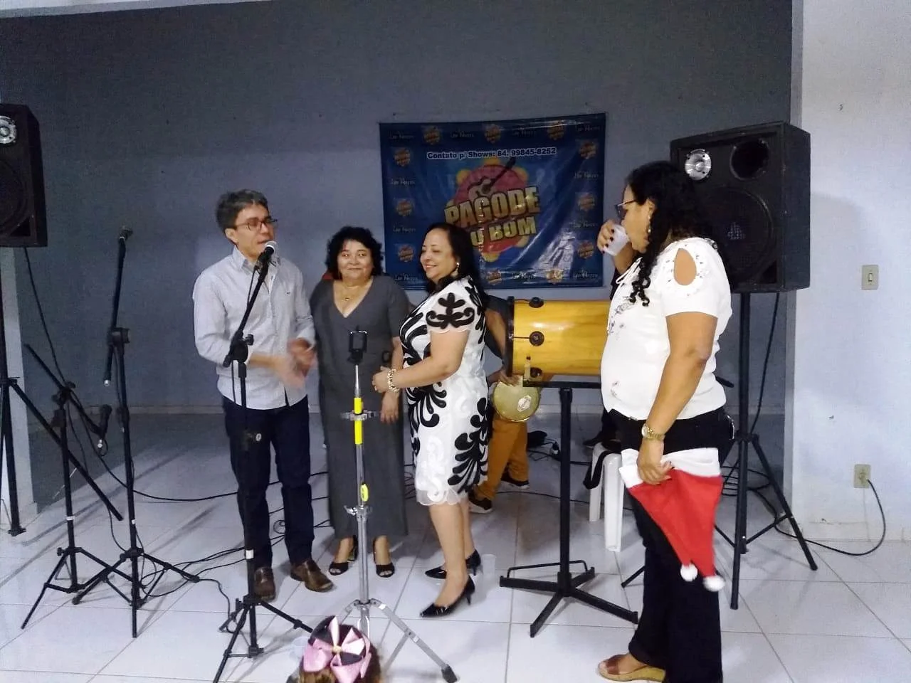 A animação ficou por conta de música ao vivo, com muito samba. Em seguida o jantar foi servido e o sorteio de prêmios aconteceu intercalado com a apresentação do grupo de samba.