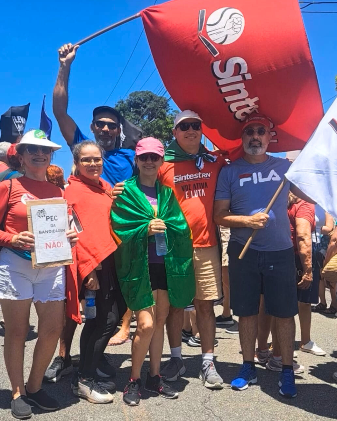 Neste domingo (21/09), a direção do SINTEST-RN marcou presença no ato unificado em Natal contra a PEC da Blindagem e a proposta de anistia aos envolvidos nos atos golpistas de 8 de janeiro.