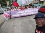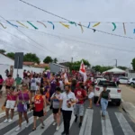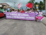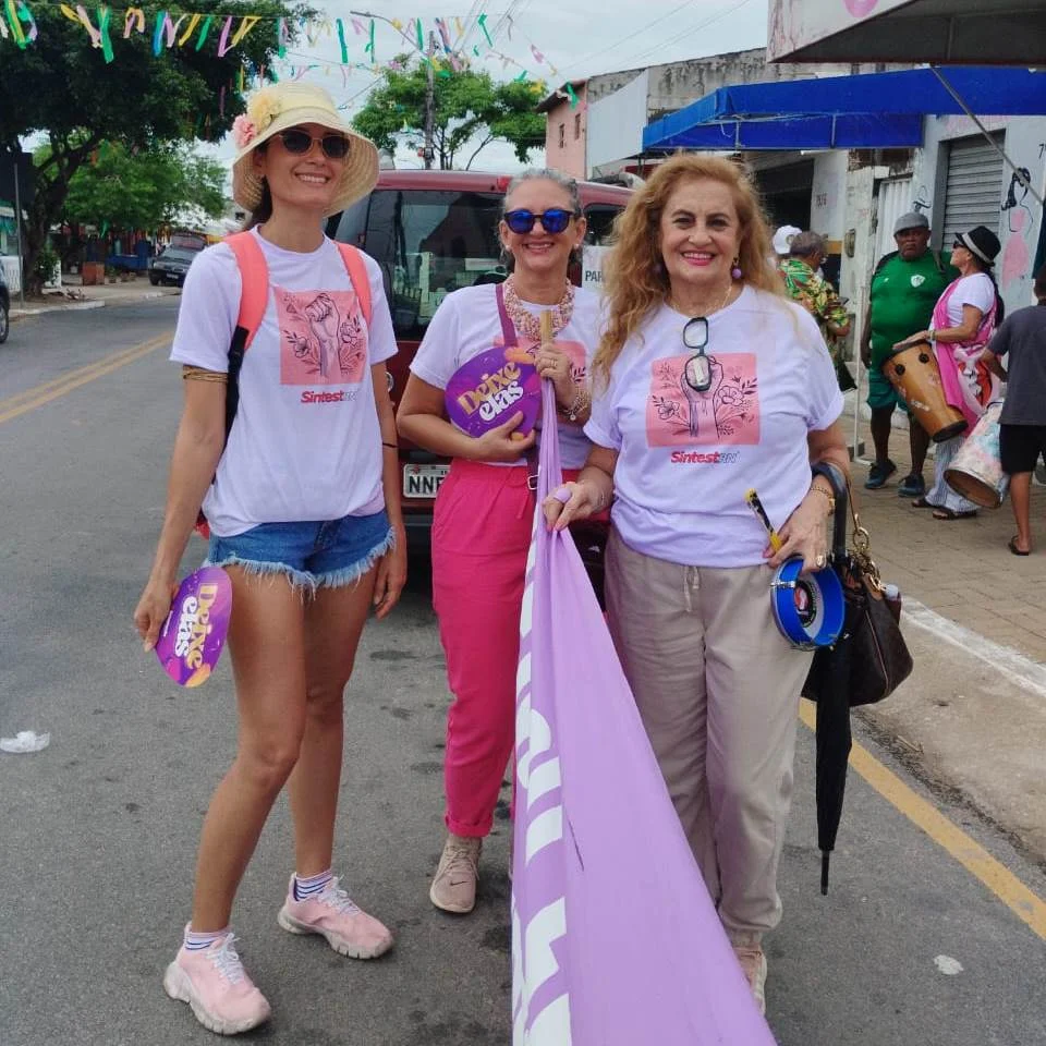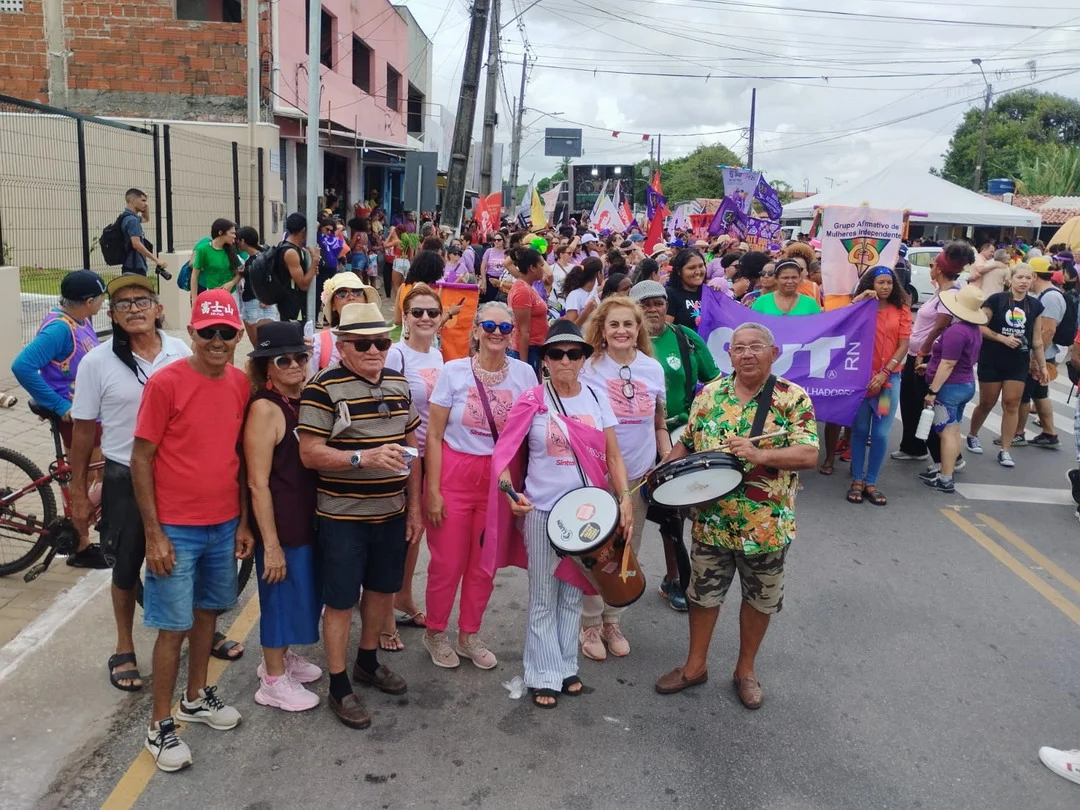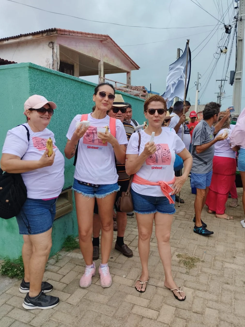 Carregando uma faixa que dizia “Nem silenciosas, nem silenciadas. Mulheres nas ruas por liberdade e  autonomia”, bandeiras e instrumentos musicais, boa parte da direção do sindicato e servidores da nossa base marcharam pelas ruas da Redinha, destacando a necessidade de seguir na luta pelos direitos das mulheres trabalhadoras.