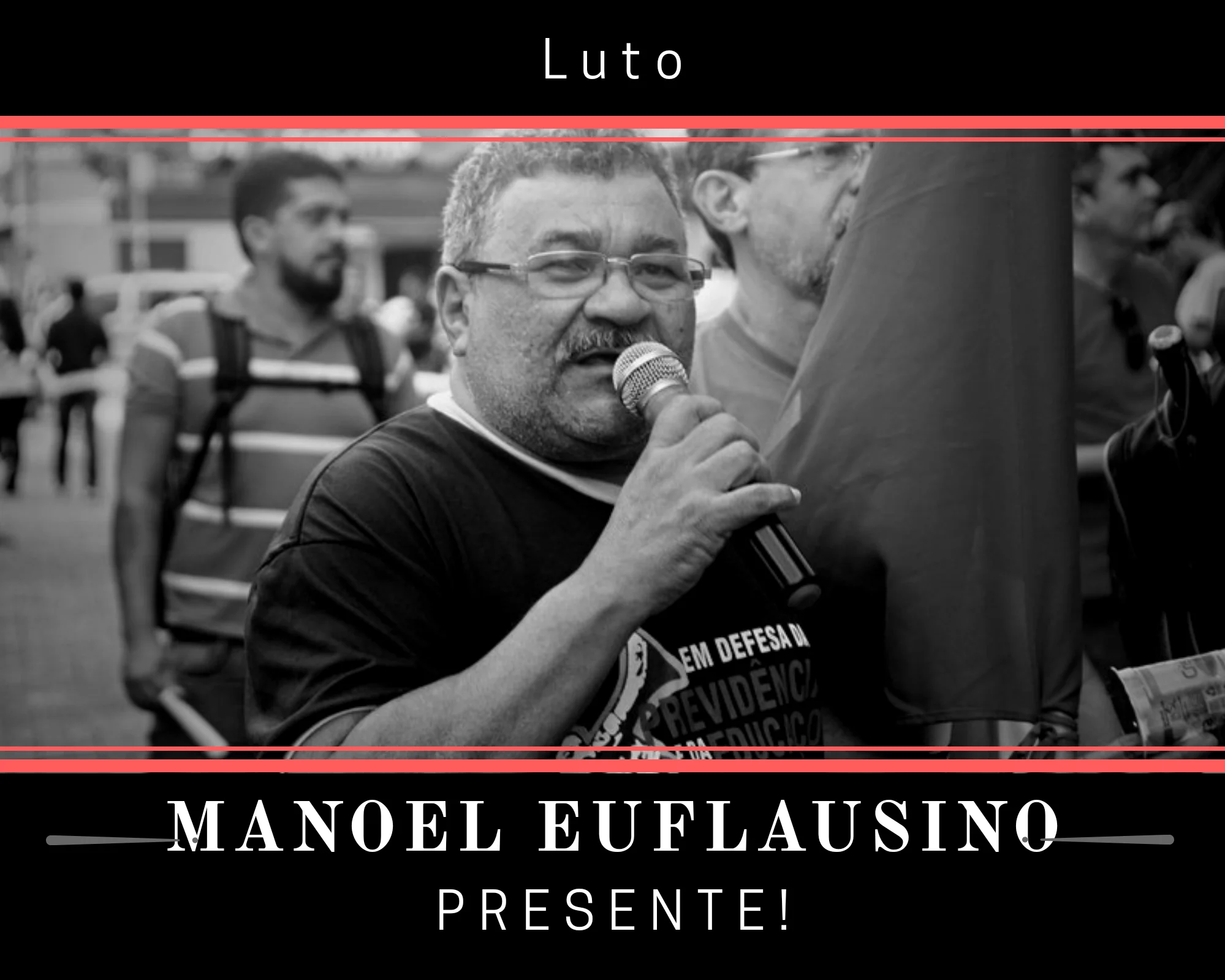 Com imensa tristeza nos nossos corações, comunicamos a todas e a todos os camaradas da base do Sintest-RN, CSP Conlutas, Fasubra e demais entidades representativas da classe trabalhadora, o falecimento do camarada Manoel Euflausino, Coordenador Geral do Sintest-RN.