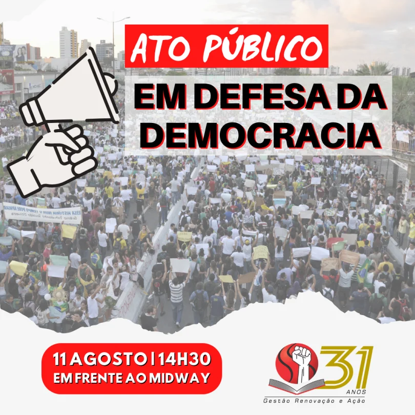 Ato público em defesa da democracia acontece nesta quinta, 11/08