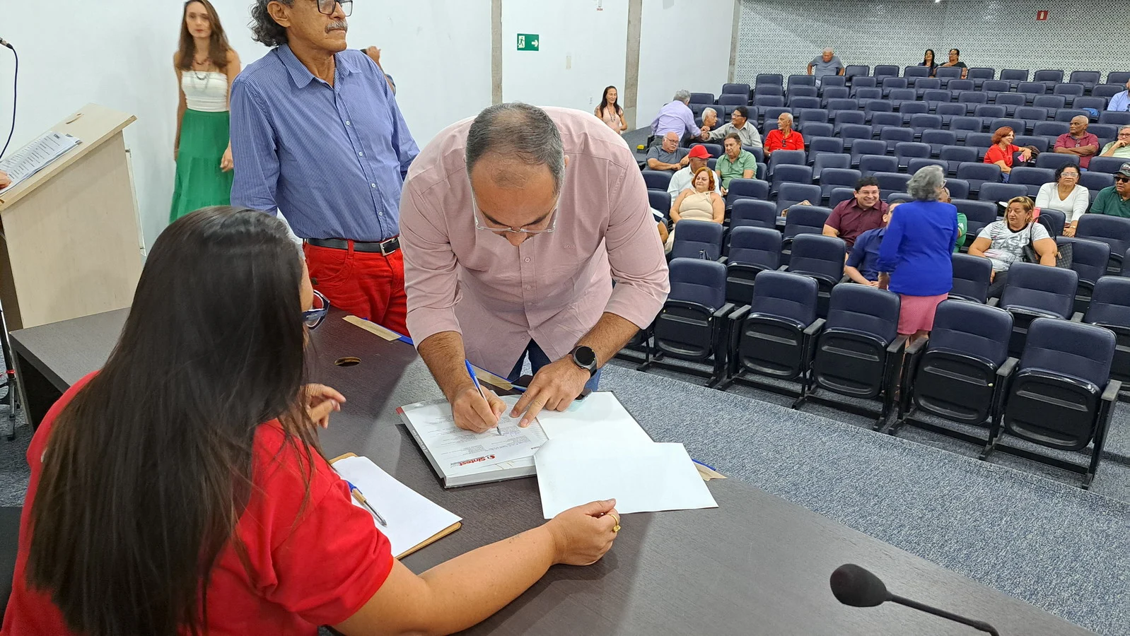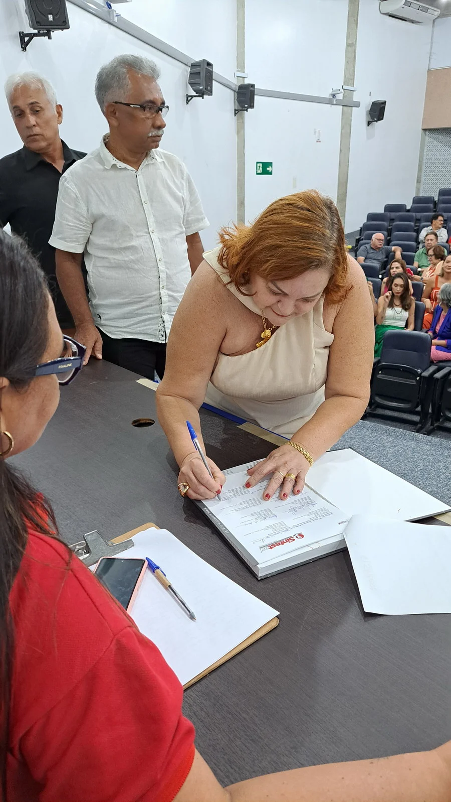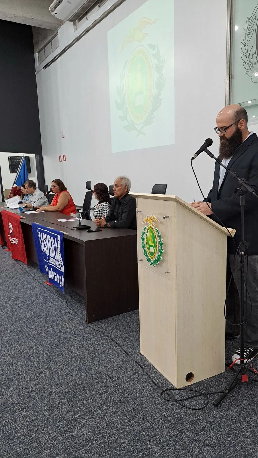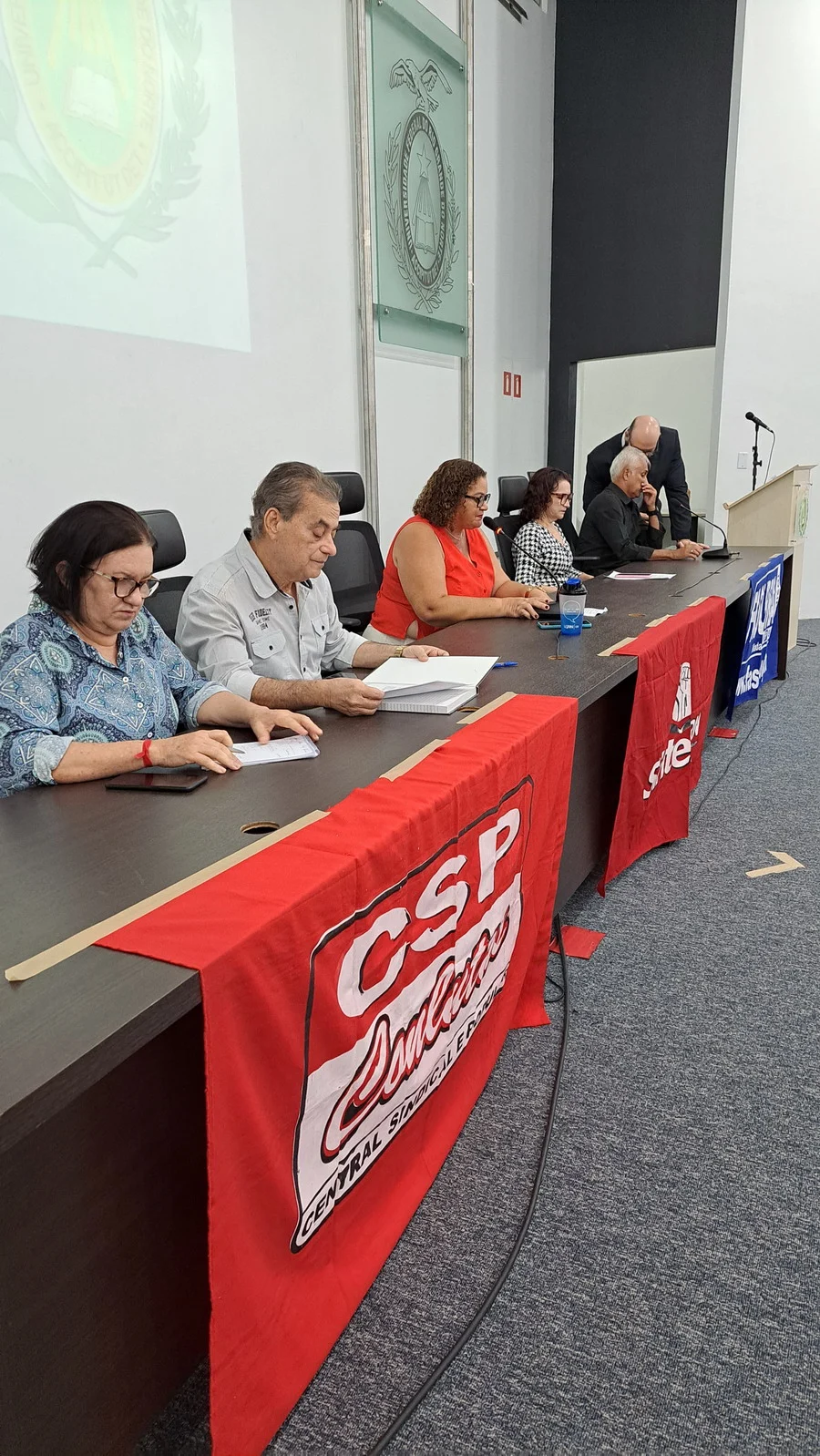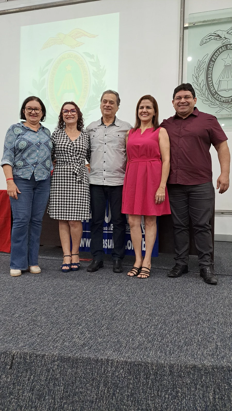 Na manhã desta terça-feira, 10 de dezembro de 2024, os 26 novos dirigentes do SINTEST-RN, eleitos em 13 de novembro, assumiram formalmente seus respectivos cargos em uma cerimônia de posse que aconteceu no auditório da Reitoria da UFRN. O evento foi marcado pela presença de vários ex-dirigentes do sindicato, por representantes da Direção que se encerra e contou com a presença do Vice-Reitor, Henio Miranda e da Pró-Reitora de Gestão de Pessoas, Mirian Dantas, que compuseram a mesa juntamente com Robertinho Silva, representando a FASUBRA, Celita Pessoa, eleita como Coordenadora Geral e Aparecida Dantas, representando a direção que se encerra.