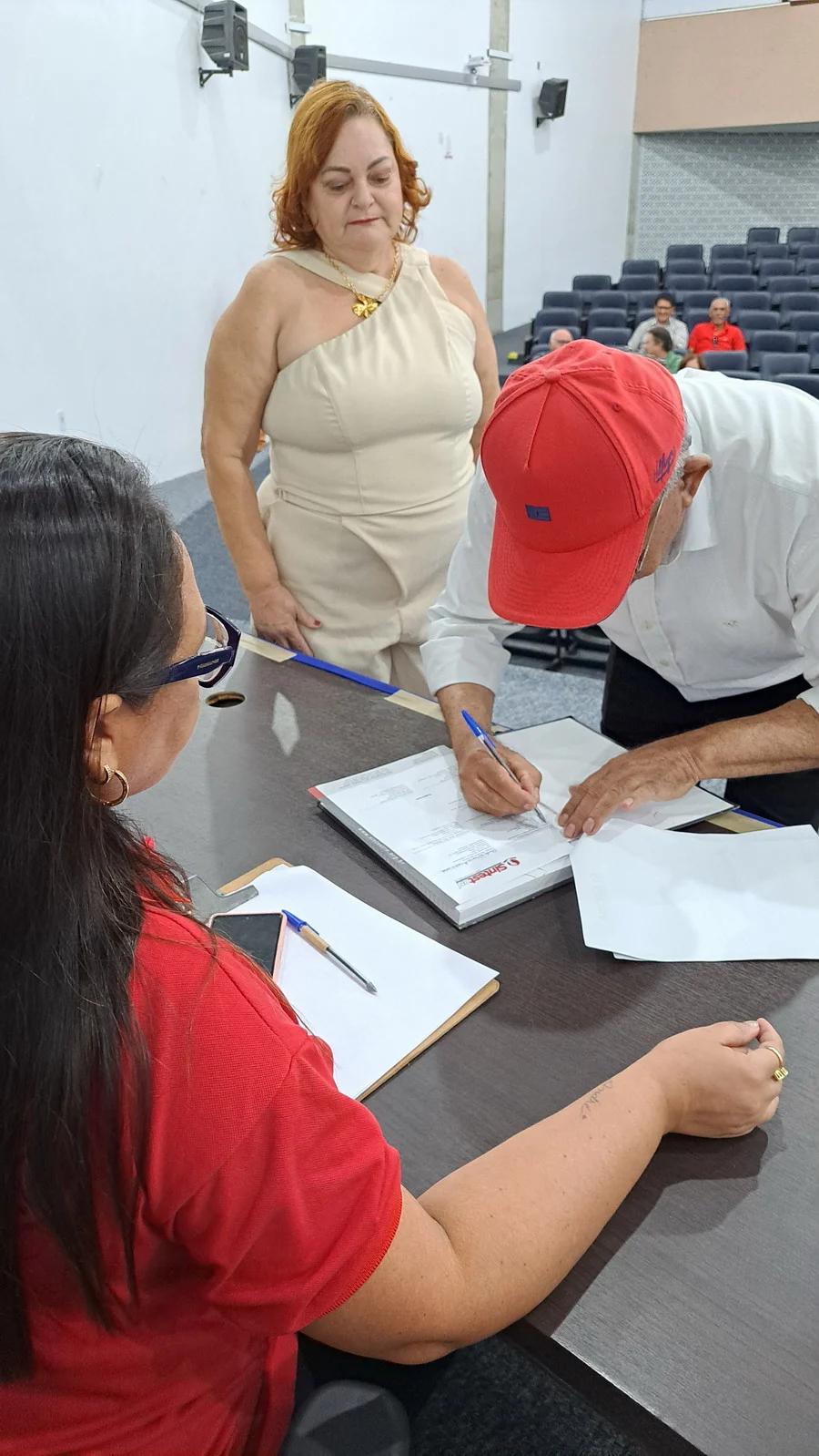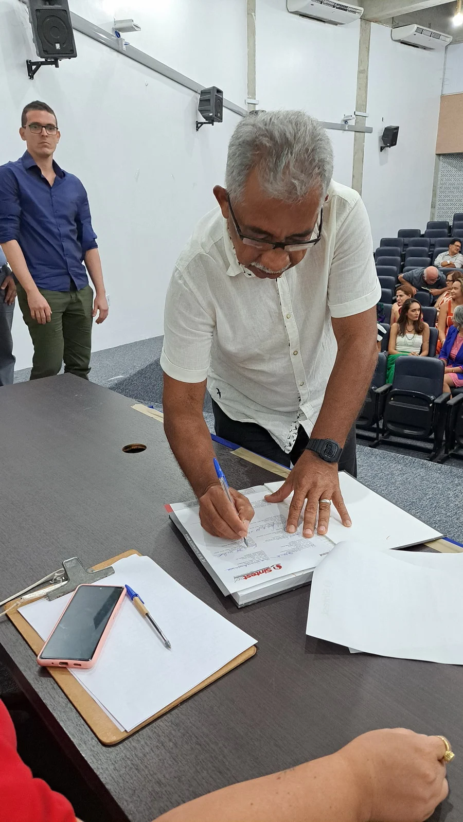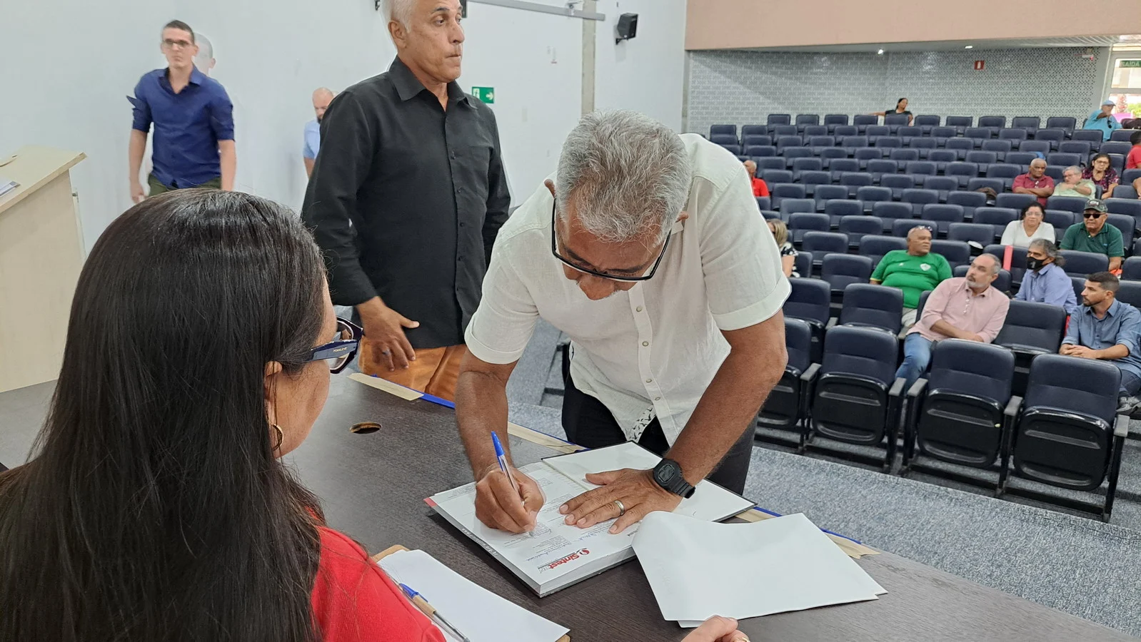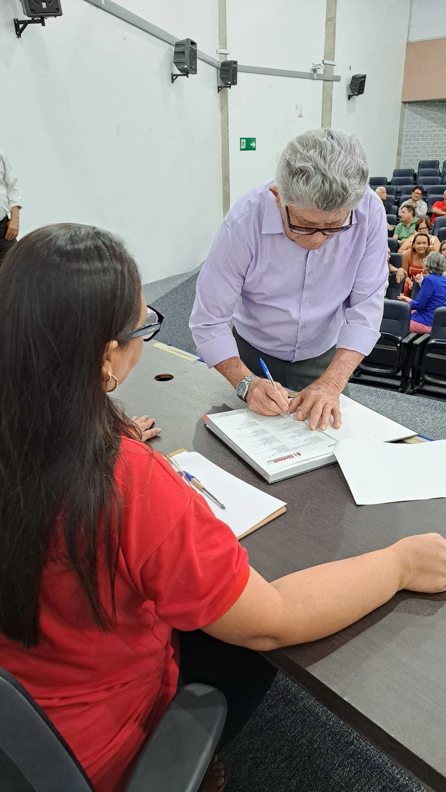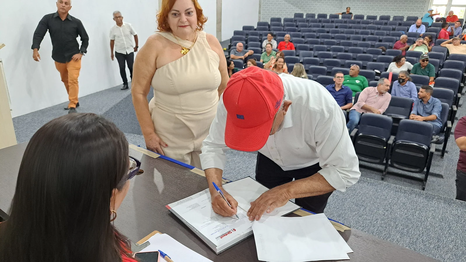 Na manhã desta terça-feira, 10 de dezembro de 2024, os 26 novos dirigentes do SINTEST-RN, eleitos em 13 de novembro, assumiram formalmente seus respectivos cargos em uma cerimônia de posse que aconteceu no auditório da Reitoria da UFRN. O evento foi marcado pela presença de vários ex-dirigentes do sindicato, por representantes da Direção que se encerra e contou com a presença do Vice-Reitor, Henio Miranda e da Pró-Reitora de Gestão de Pessoas, Mirian Dantas, que compuseram a mesa juntamente com Robertinho Silva, representando a FASUBRA, Celita Pessoa, eleita como Coordenadora Geral e Aparecida Dantas, representando a direção que se encerra.