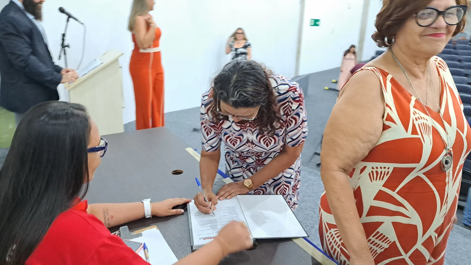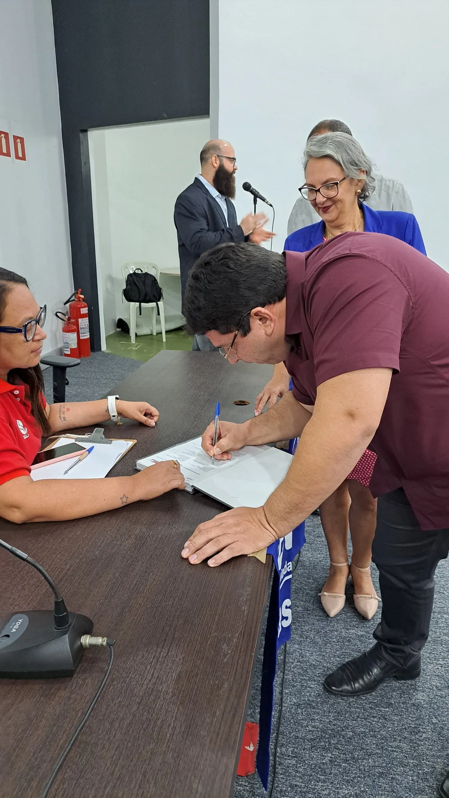 A nova coordenação geral é composta por Celita Menezes, Eliane Alves e Cezar de Souza. E coube à Celita fazer o discurso em nome da nova gestão.
