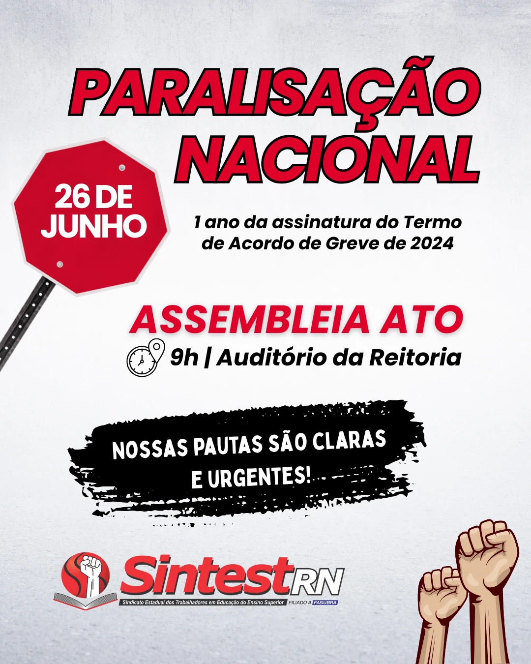 Sindicato dos Estadual dos Trabalhadores em Educação no Ensino Superior – Rua das Angélicas, 225 – Mirassol – Natal – RN CEP: 59078-130 – Cx. postal: 1516 – CEP: 59078-970.
