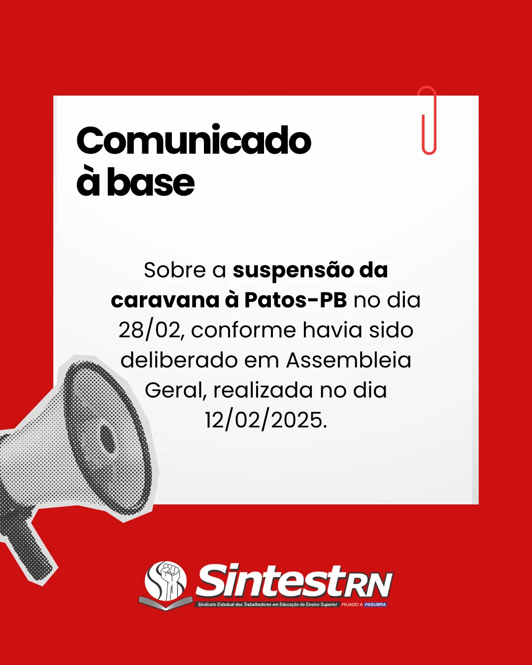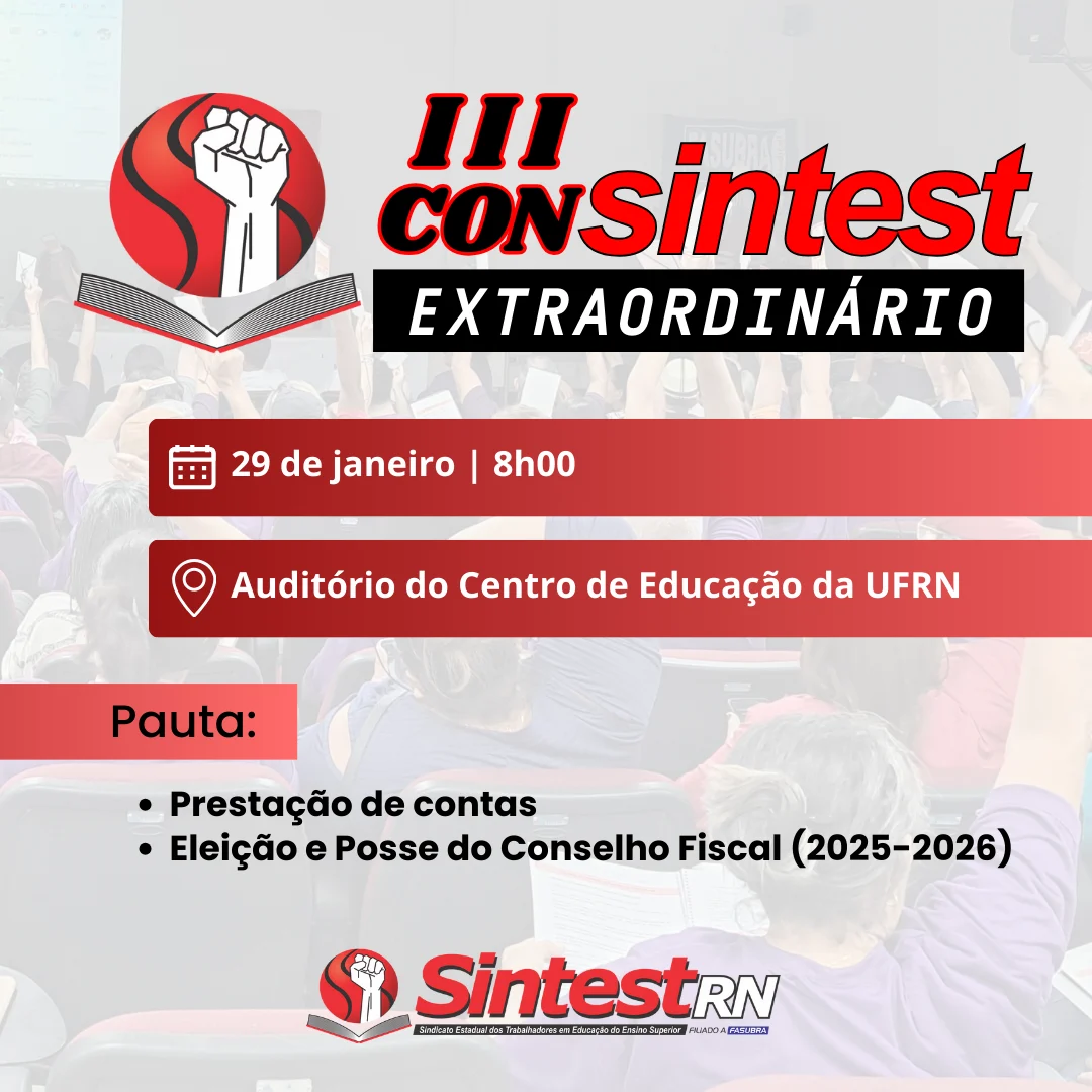 Sindicato dos Estadual dos Trabalhadores em Educação no Ensino Superior – Rua das Angélicas, 225 – Mirassol – Natal – RN CEP: 59078-130 – Cx. postal: 1516 – CEP: 59078-970.