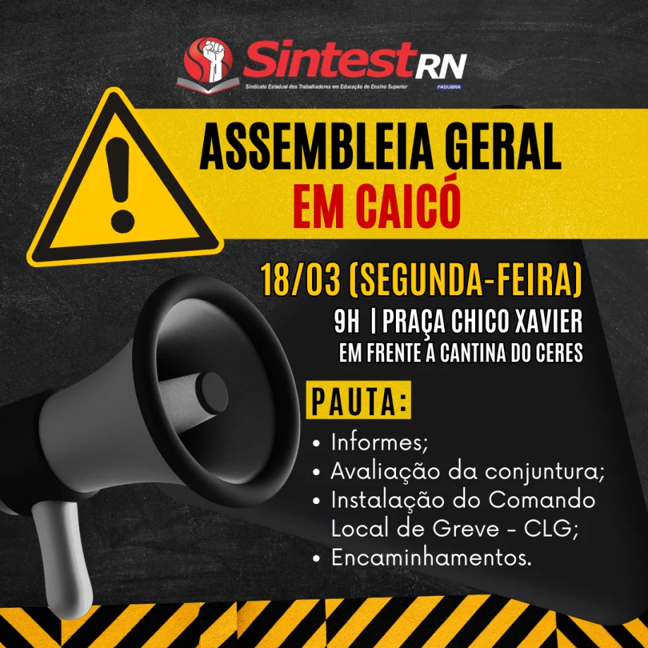 Sindicato dos Estadual dos Trabalhadores em Educação no Ensino Superior – Rua das Angélicas, 225 – Mirassol – Natal – RN CEP: 59078-130 – Cx. postal: 1516 – CEP: 59078-970.