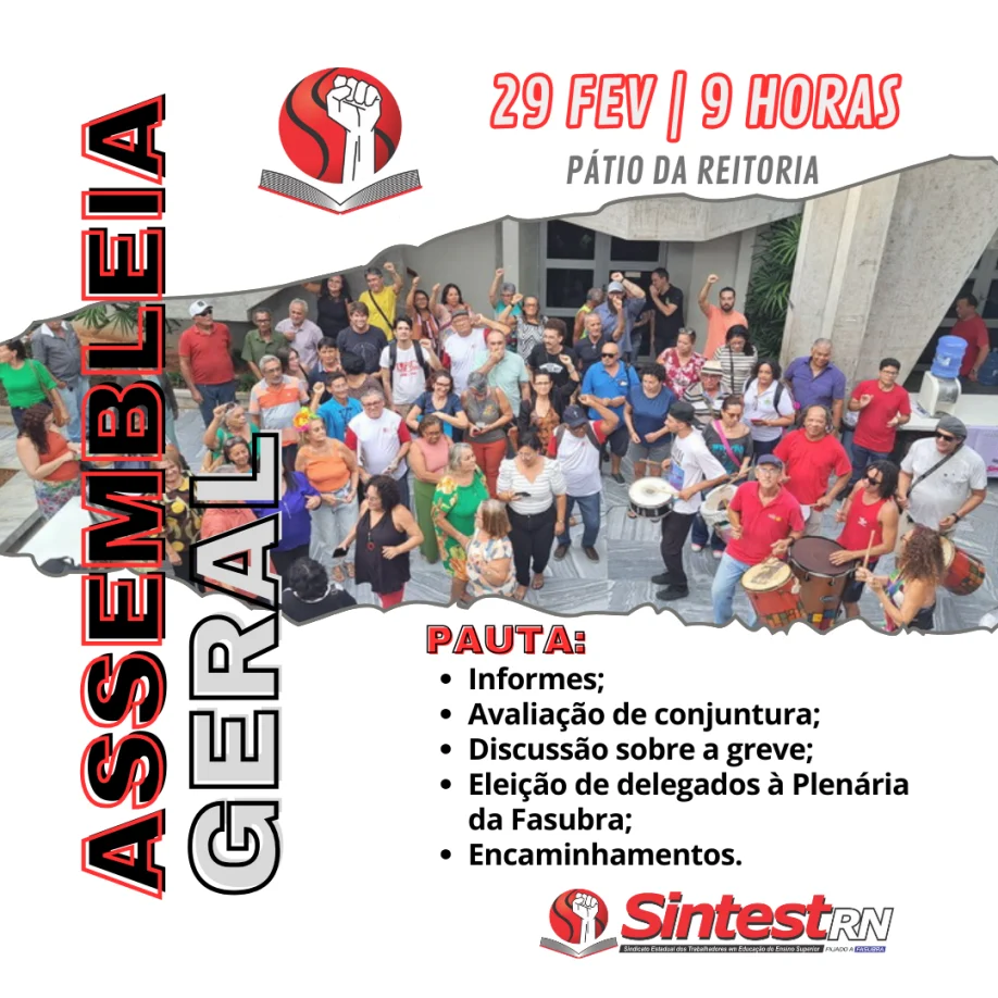Sindicato dos Estadual dos Trabalhadores em Educação no Ensino Superior – Rua das Angélicas, 225 – Mirassol – Natal – RN CEP: 59078-130 – Cx. postal: 1516 – CEP: 59078-970.