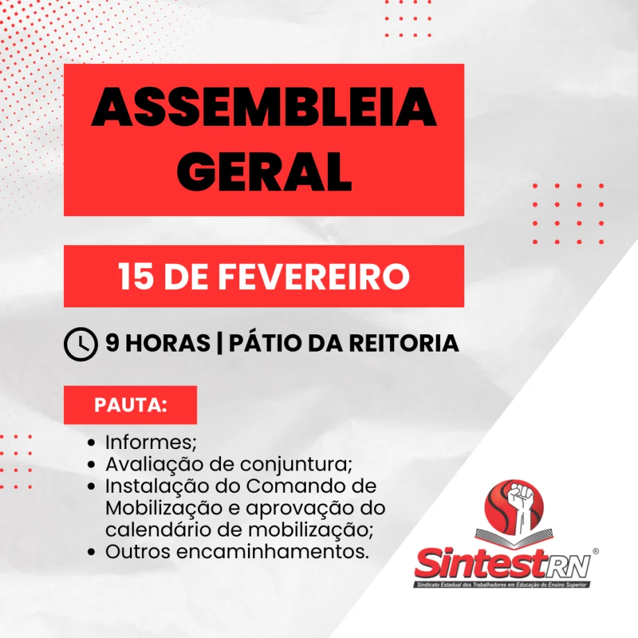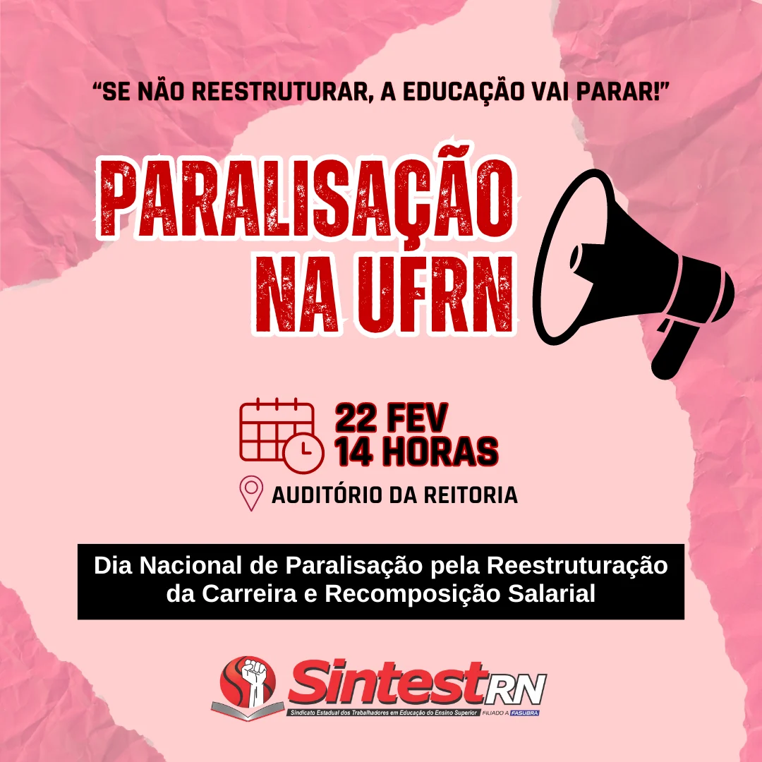 Sindicato dos Estadual dos Trabalhadores em Educação no Ensino Superior – Rua das Angélicas, 225 – Mirassol – Natal – RN CEP: 59078-130 – Cx. postal: 1516 – CEP: 59078-970.