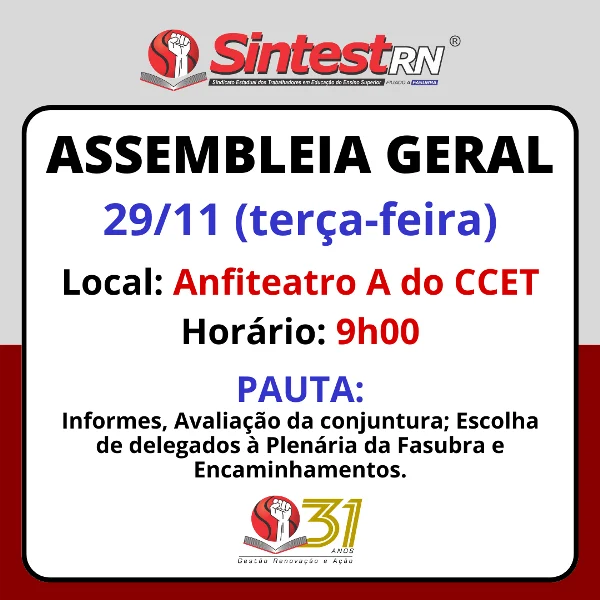 Sindicato dos Estadual dos Trabalhadores em Educação no Ensino Superior – Rua das Angélicas, 225 – Mirassol – Natal – RN CEP: 59078-130 – Cx. postal: 1516 – CEP: 59078-970.