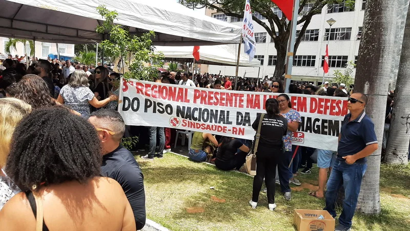 E os profissionais do Rio Grande do Norte mostraram que estão unidos e mobilizados na paralisação desta quarta-feira, 21, na Praça 7 de setembro, em Natal/RN. Os profissionais reivindicam a implementação da Lei do Piso Nacional e também protestam contra o veto do presidente Bolsonaro ao reajuste anual.