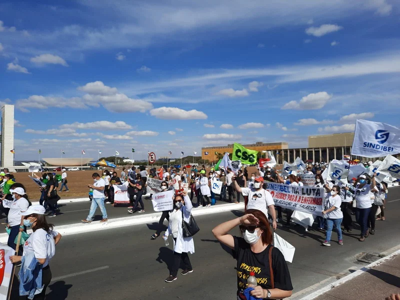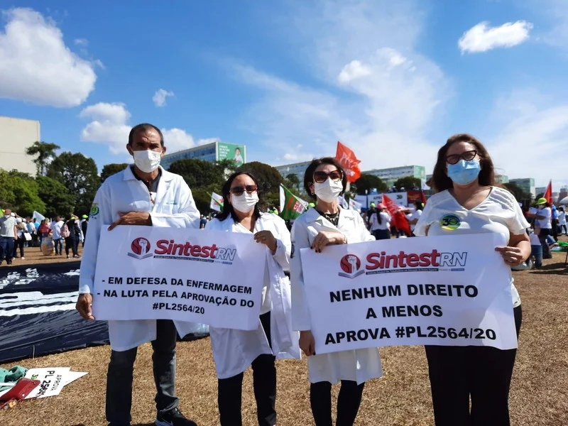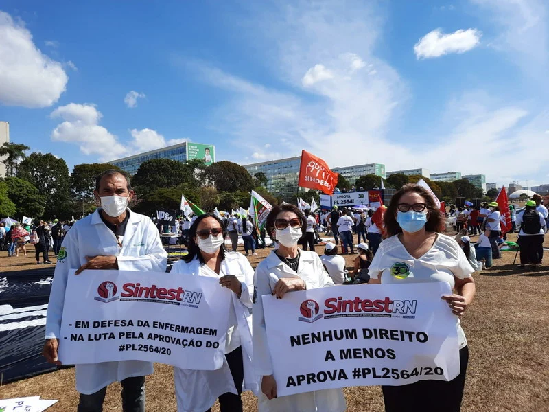 O Sintest/RN esteve presente na mobilização nacional em Brasília pela aprovação do PL 2564/2020 que trata do piso salarial e jornada digna para o profissionais de Enfermagem do Brasil.