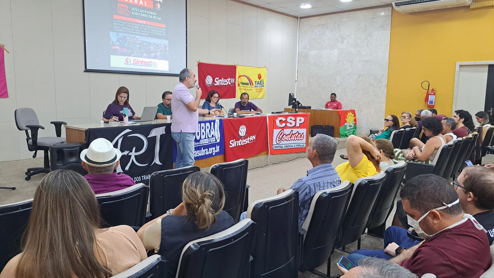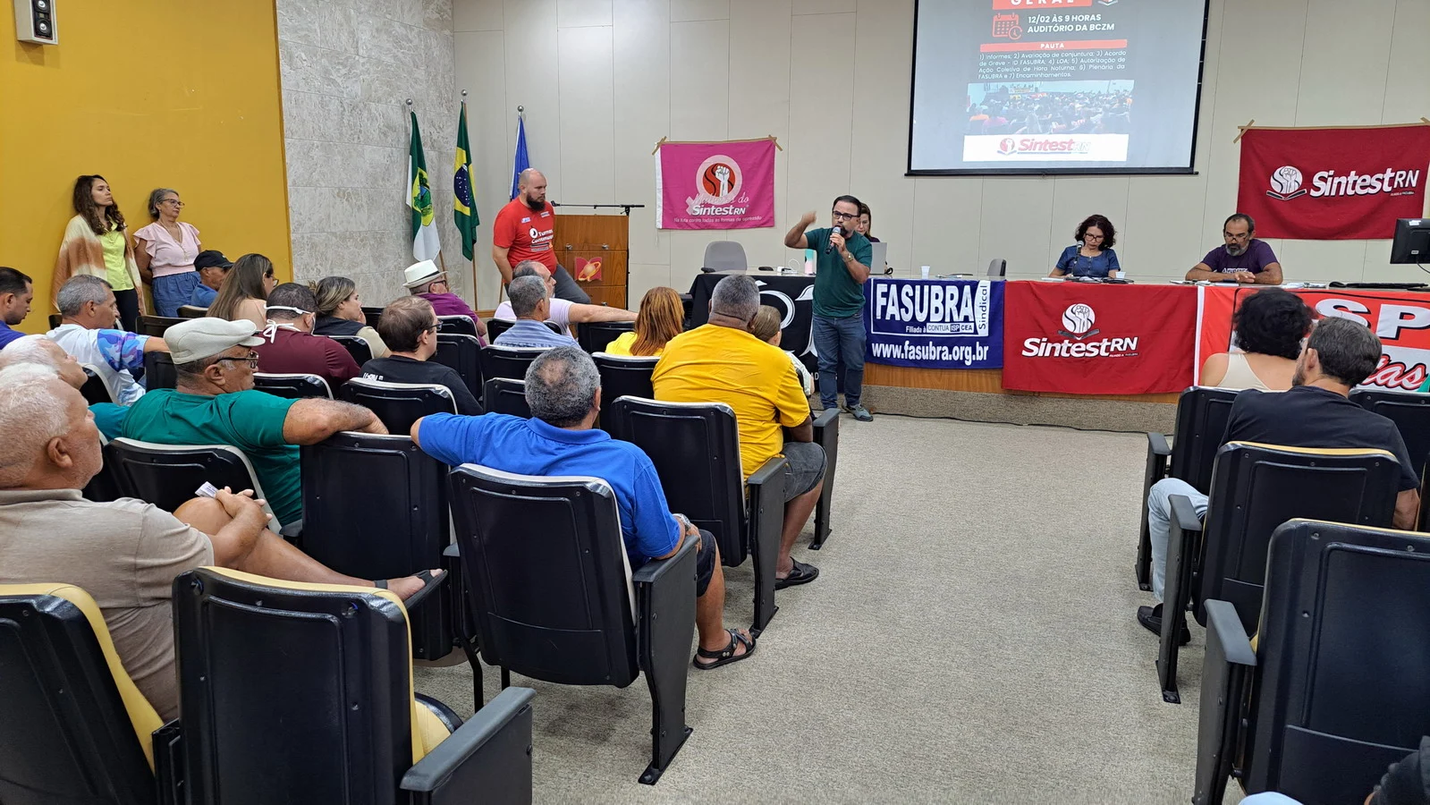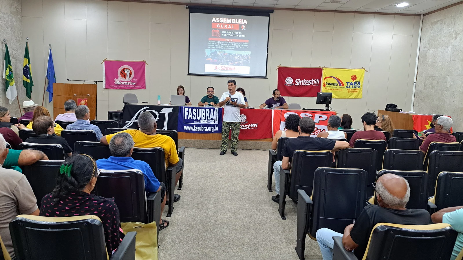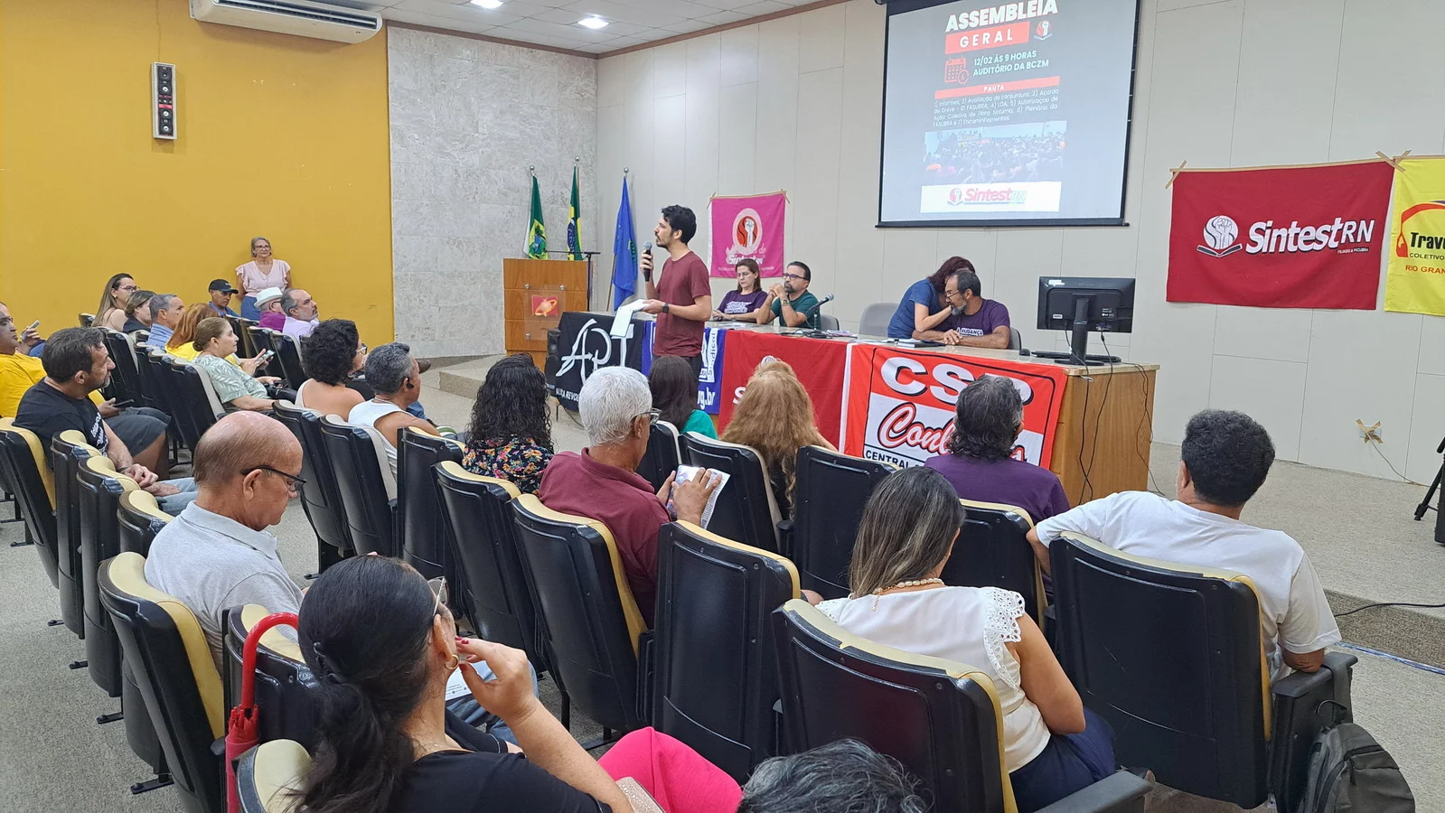 Na manhã desta quarta-feira (12), o SINTEST-RN realizou Assembleia Geral no auditório da Biblioteca Central Zila Mamede. O encontro teve como objetivo discutir questões essenciais para a categoria, como o reajuste salarial de 9% que deveria ter ocorrido em janeiro de 2025, e que consta no acordo de greve, estar travado por conta da não votação da Lei Orçamentária Anual (LOA), bem como outros pontos e o encaminhamentos de mobilizações.