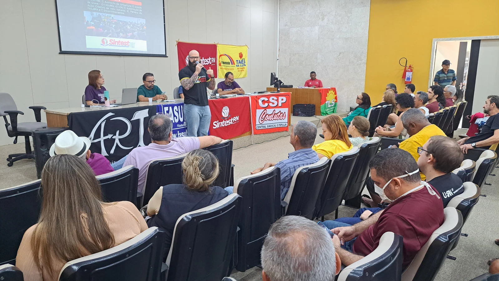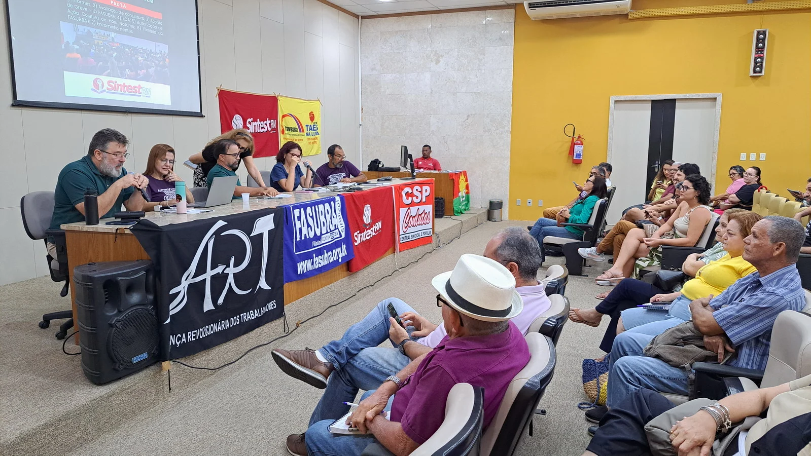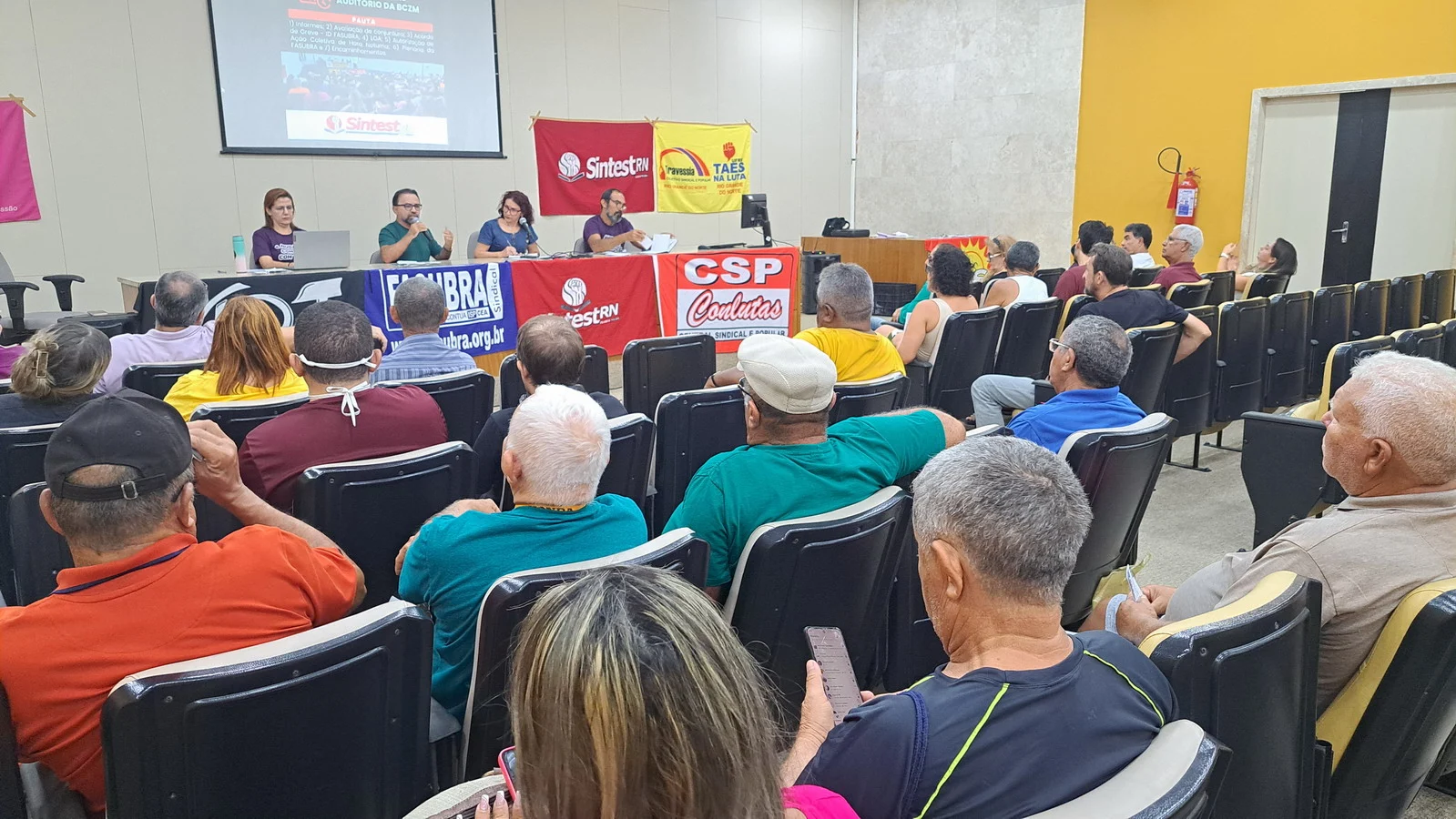 Na manhã desta quarta-feira (12), o SINTEST-RN realizou Assembleia Geral no auditório da Biblioteca Central Zila Mamede. O encontro teve como objetivo discutir questões essenciais para a categoria, como o reajuste salarial de 9% que deveria ter ocorrido em janeiro de 2025, e que consta no acordo de greve, estar travado por conta da não votação da Lei Orçamentária Anual (LOA), bem como outros pontos e o encaminhamentos de mobilizações.