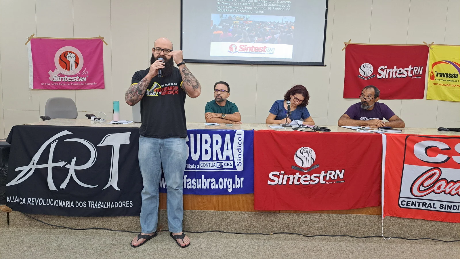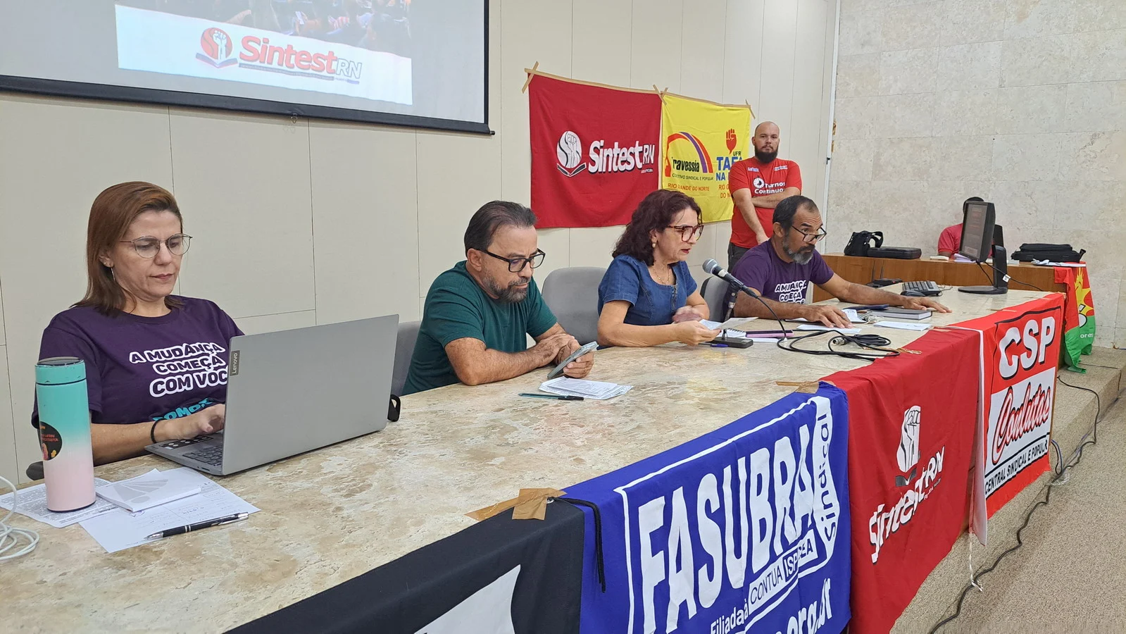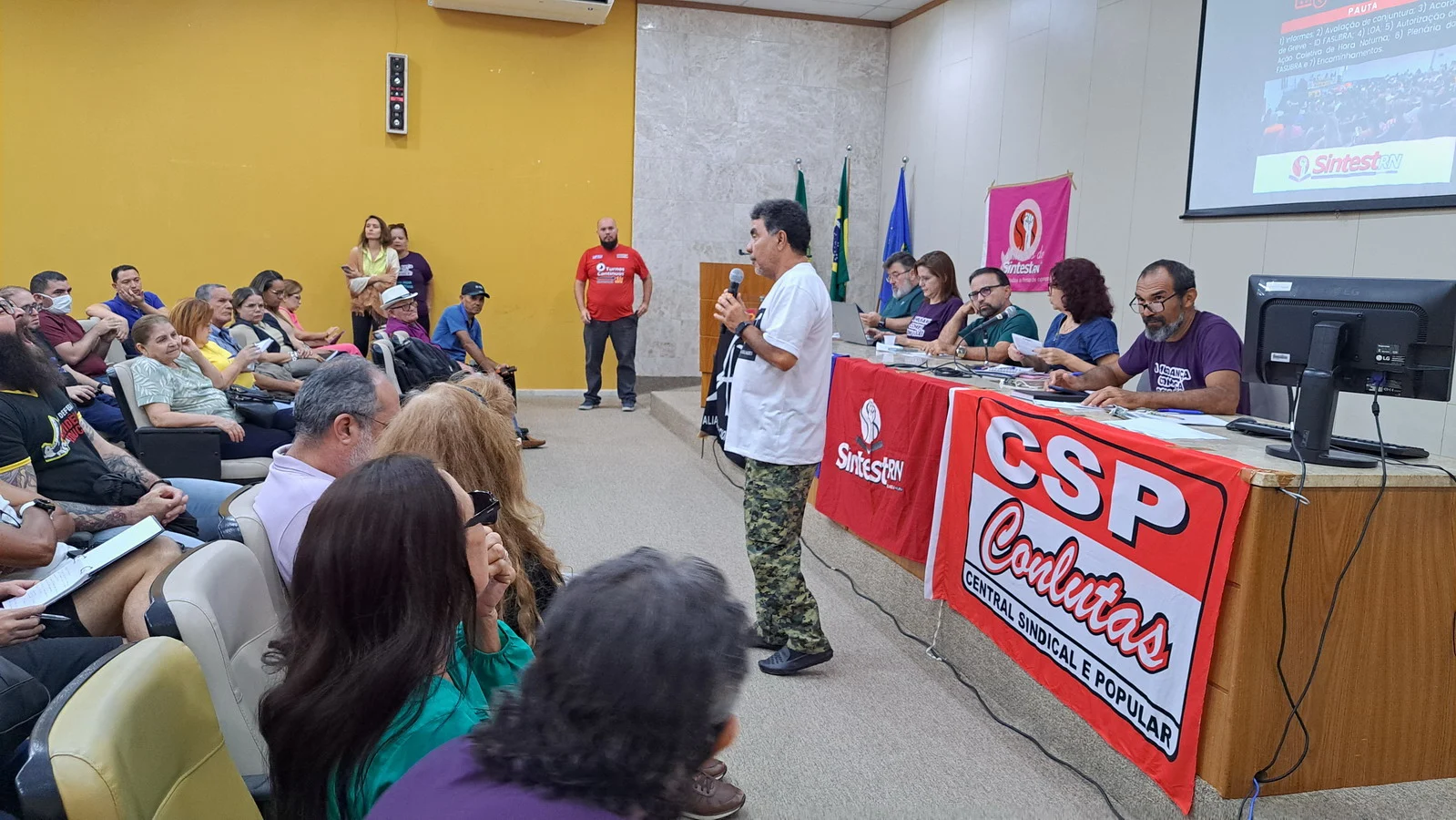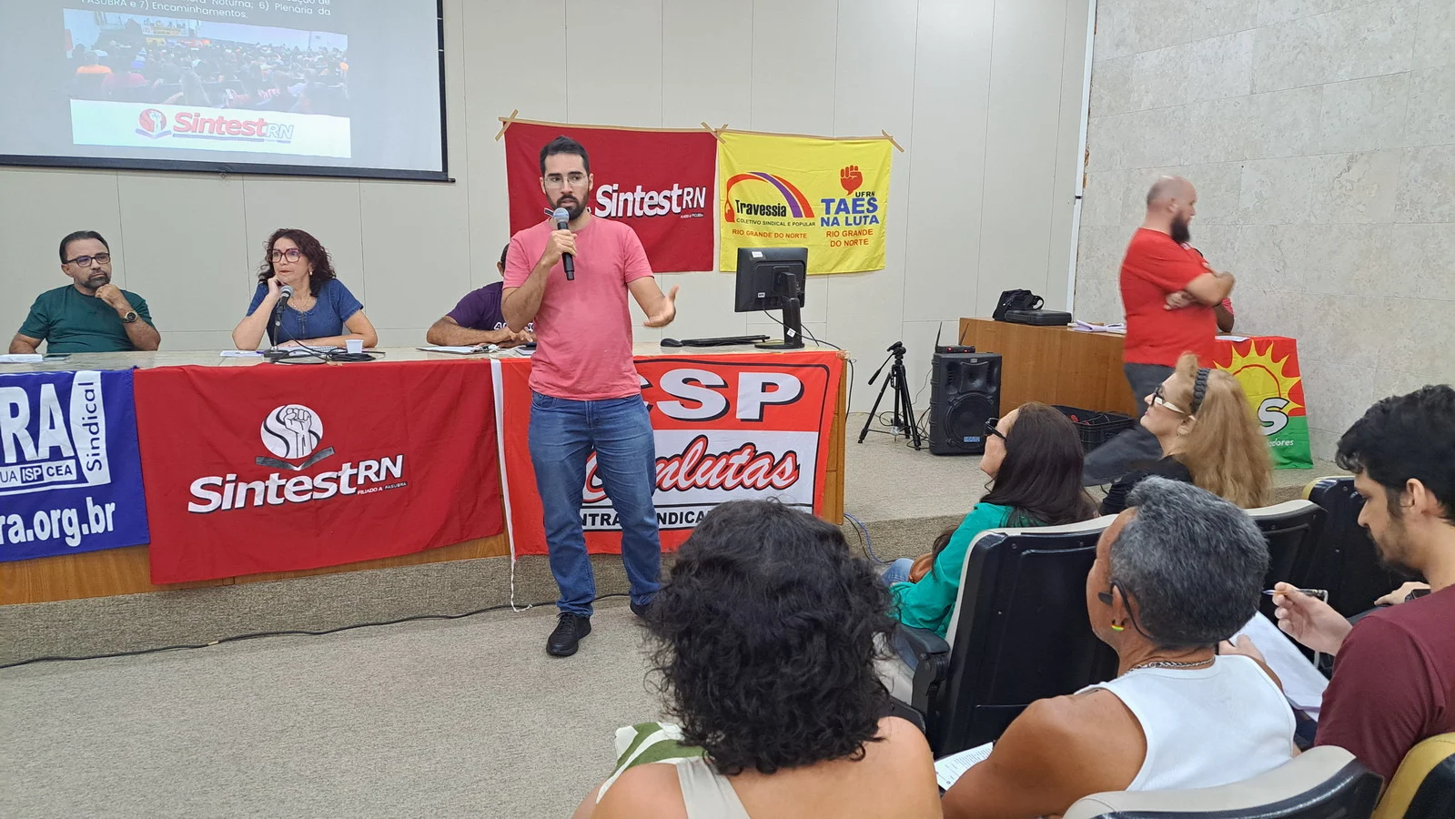 Na manhã desta quarta-feira (12), o SINTEST-RN realizou Assembleia Geral no auditório da Biblioteca Central Zila Mamede. O encontro teve como objetivo discutir questões essenciais para a categoria, como o reajuste salarial de 9% que deveria ter ocorrido em janeiro de 2025, e que consta no acordo de greve, estar travado por conta da não votação da Lei Orçamentária Anual (LOA), bem como outros pontos e o encaminhamentos de mobilizações.