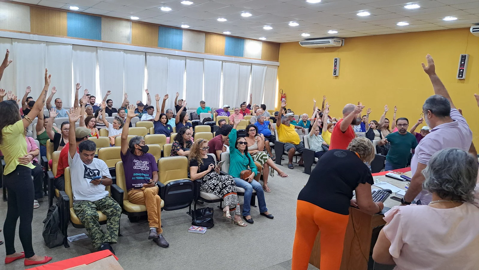 Na pauta judicial, a Assembleia aprovou, com sete abstenções, a Ação Coletiva de Hora Noturna, que visa reivindicar o pagamento retroativo a cinco anos aos servidores que trabalham em escala noturna. A medida se baseia na diferença de duração da hora noturna, que tem 52 minutos e 30 segundos, em comparação à hora diurna, que possui 60 minutos. Assim, os trabalhadores noturnos recebem uma hora de trabalho a cada 52 minutos e 30 segundos efetivamente trabalhados.