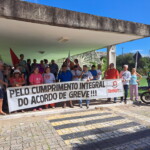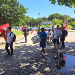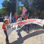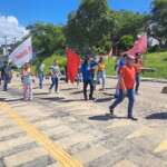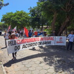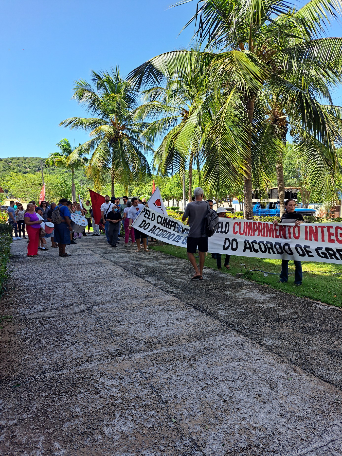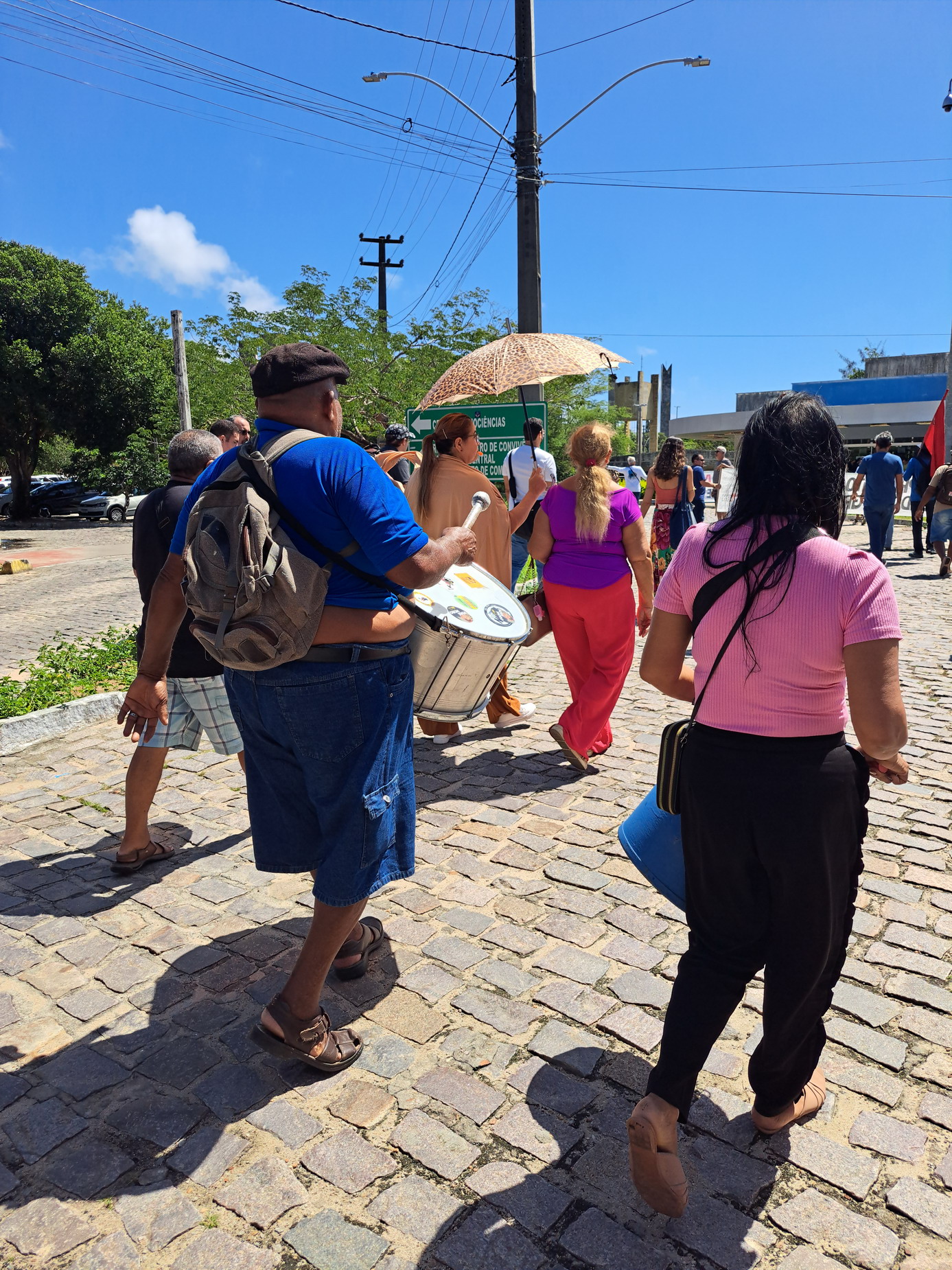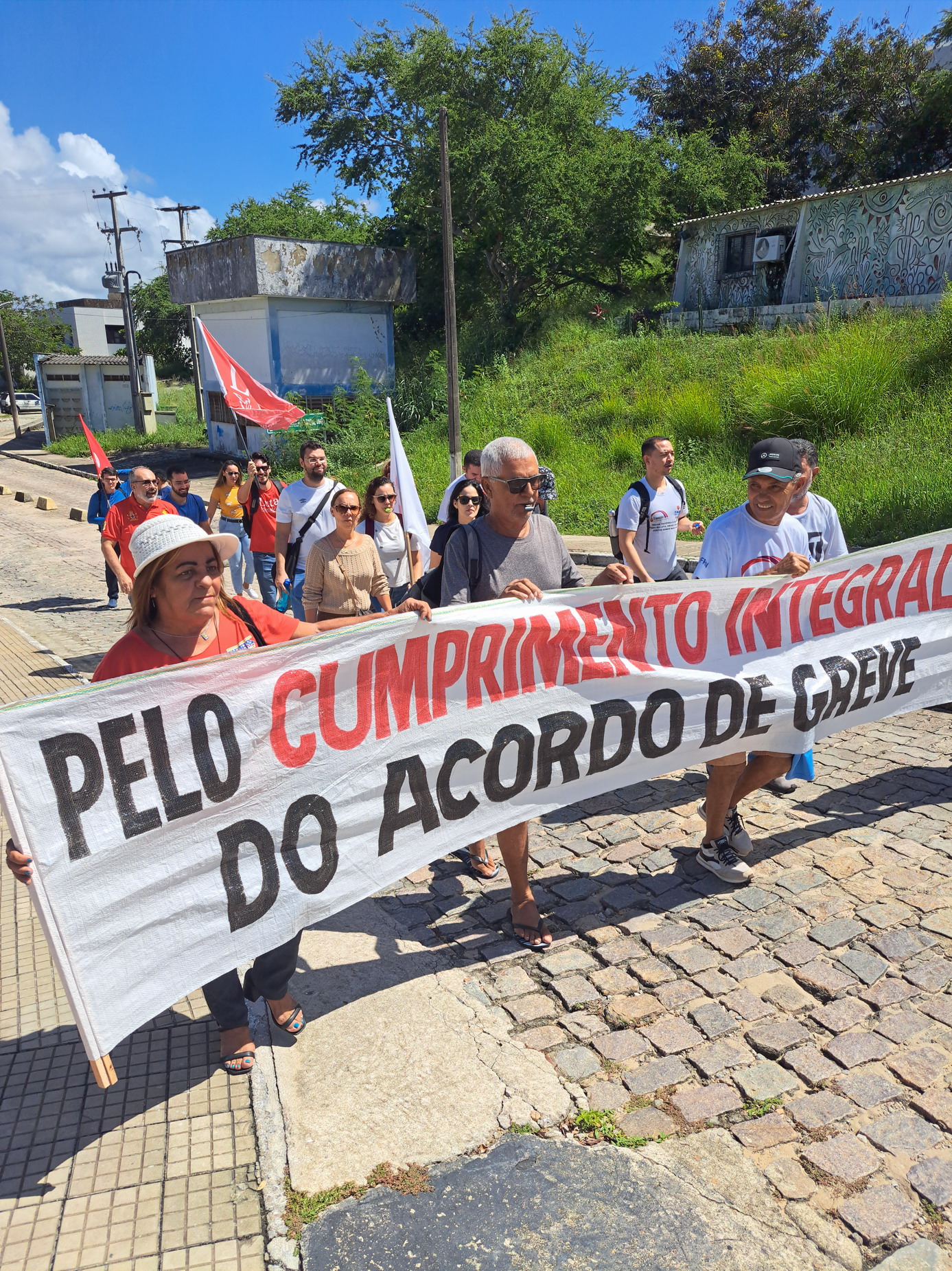 Com apitos, faixas, bandeiras e palavras de ordem, os manifestantes seguiram em caminhada pelo campus universitário, dialogando com estudantes e conclamando mais servidores a se somarem à paralisação.