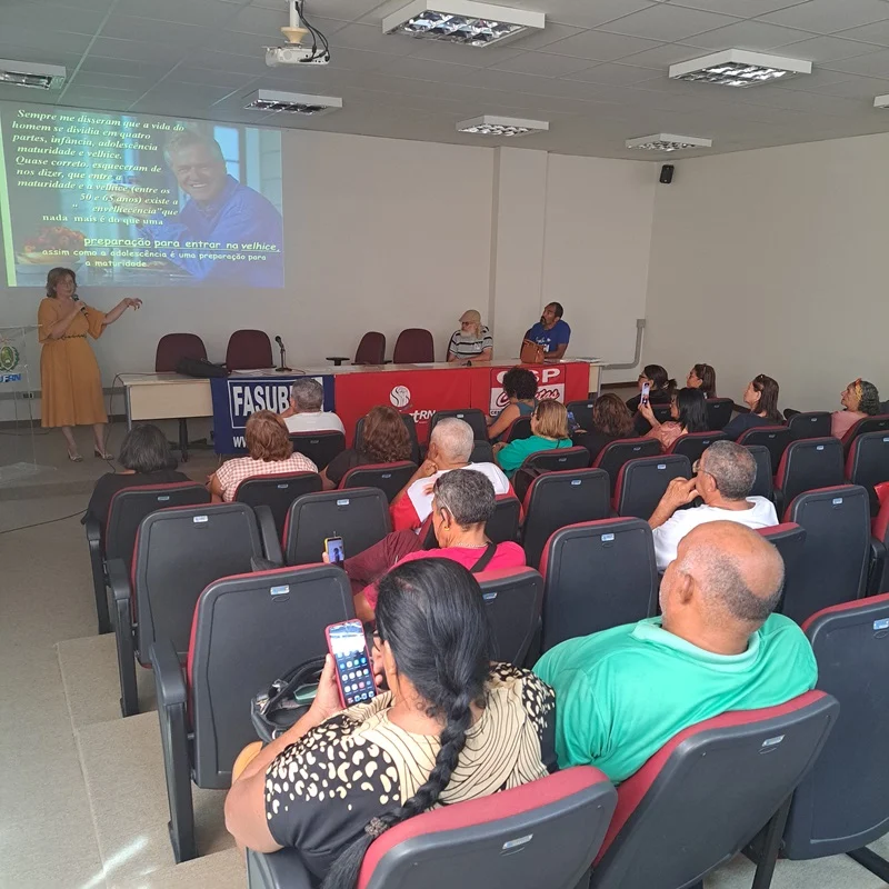 A programação contou com uma excelente palestra da médica geriatra Maria Silese Medeiros (DAS-UFRN) sobre “Comportamento Sexual e Qualidade de Vida na terceira idade” e com uma explanação sobre reestruturação da carreira com o coordenador de comunicação do Sintest, Viktor Gruska.