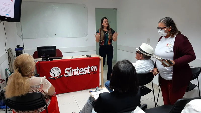 O encontro foi organizado pela coordenação de aposentados e pensionistas do Sintest e aconteceu no auditório do sindicato, sendo transmitido pelo Google Meet. A programação contou com as palestras de Olga Regina Duarte Vieira Borges e Márcia Vieira de Alencar Caldas.