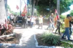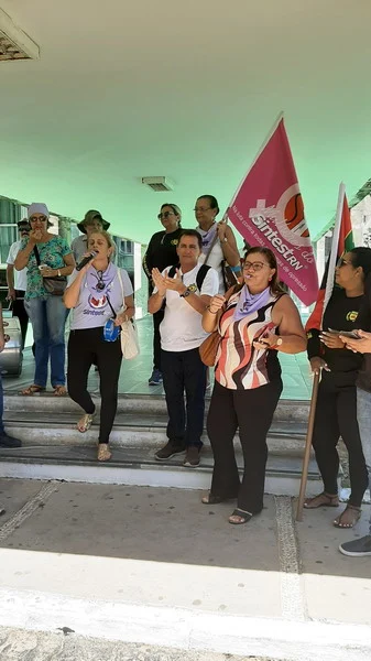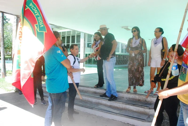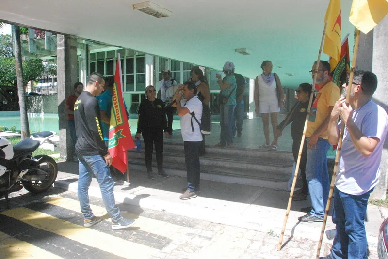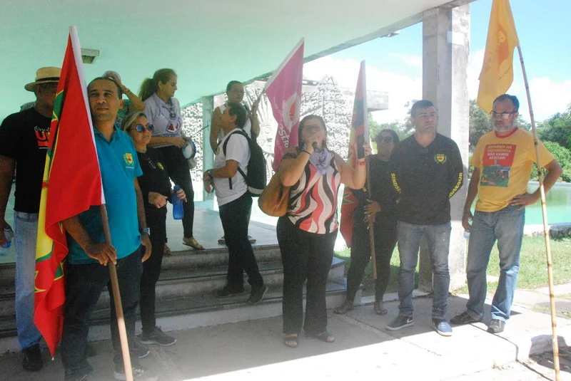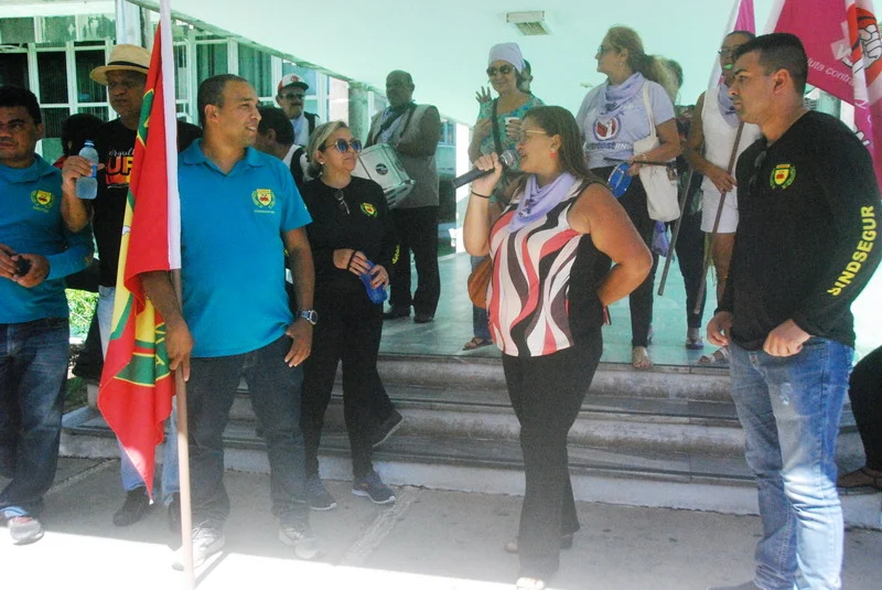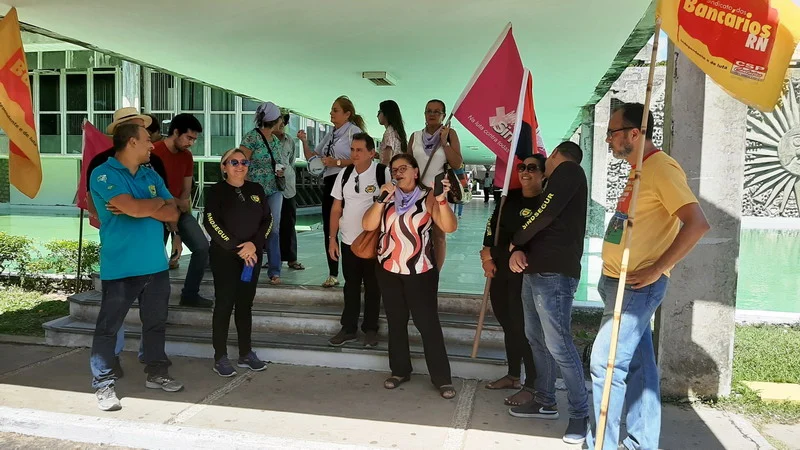 Com a presença da bandinha e distribuição de lenços, o ato se juntou a uma manifestação dos vigilantes terceirizados da UFRN, organizada pelo SINDSEGUR e SINDBANCÁRIOS-RN que reivindicam sua convenção coletiva.