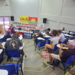 Na manhã desta quarta-feira (24), o SINTEST-RN realizou Assembleia Geral no Anfiteatro B do CCET/UFRN para debater a conjuntura nacional e avaliar a possibilidade de deflagração de uma nova greve dos técnico-administrativos da UFRN. A mesa foi composta por Celita Pessoa (coordenadora geral), Érika Galvão (coordenadora de administração e patrimônio), Roberto Silva (coordenador de políticas sociais) e Carlos Alberto Marques (assessor jurídico da entidade).