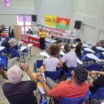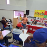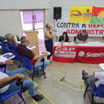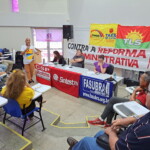Durante a análise de conjuntura, foram apresentados diversos encaminhamentos. Entre os principais pontos, destacou-se o descumprimento de compromissos assumidos, como a regulamentação do RSC, a implantação da escala 12×60 e a aceleração para aposentados. Também foi ressaltada a necessidade de intensificar a mobilização nas bases e nos setores da UFRN.