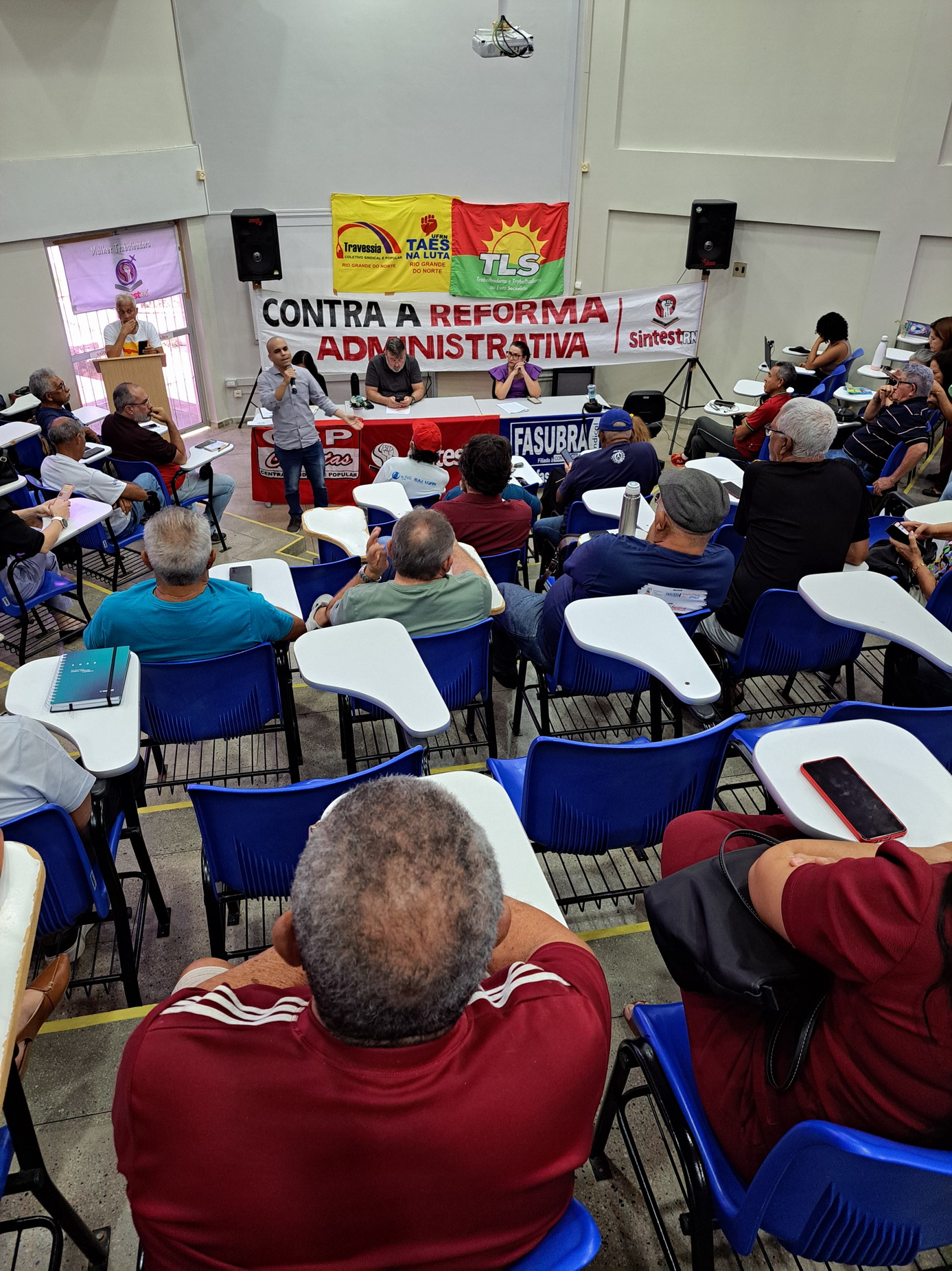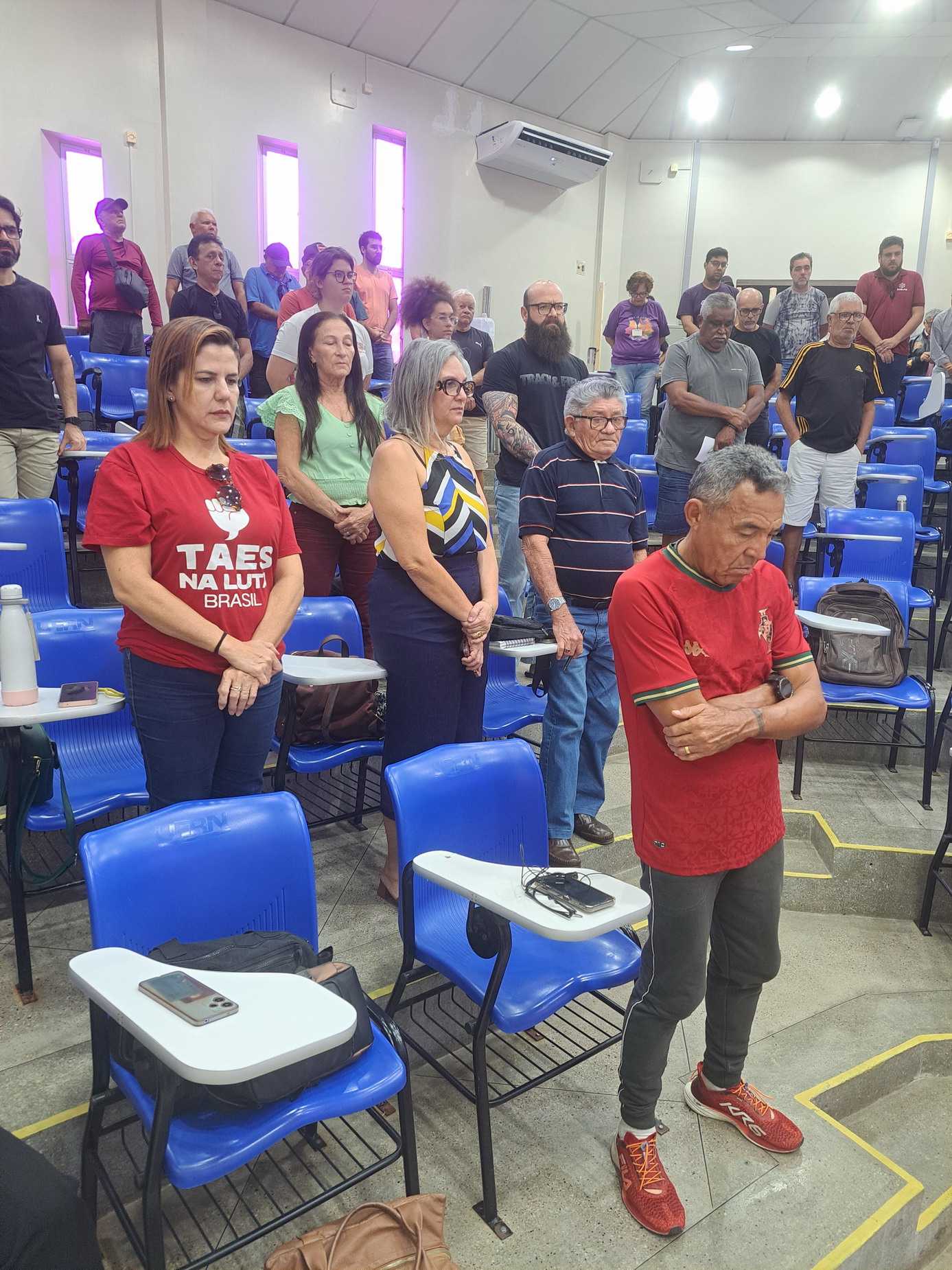 A pauta única da Assembleia foi a análise sobre a deflagração de greve, em meio ao descumprimento de pontos centrais do acordo firmado no movimento paredista de 2024. Nos informes, destacou-se que o Ministério da Educação descartou o reposicionamento dos aposentados, não deu andamento ao processo de jornada de 30 horas e não abriu o GT da racionalização.