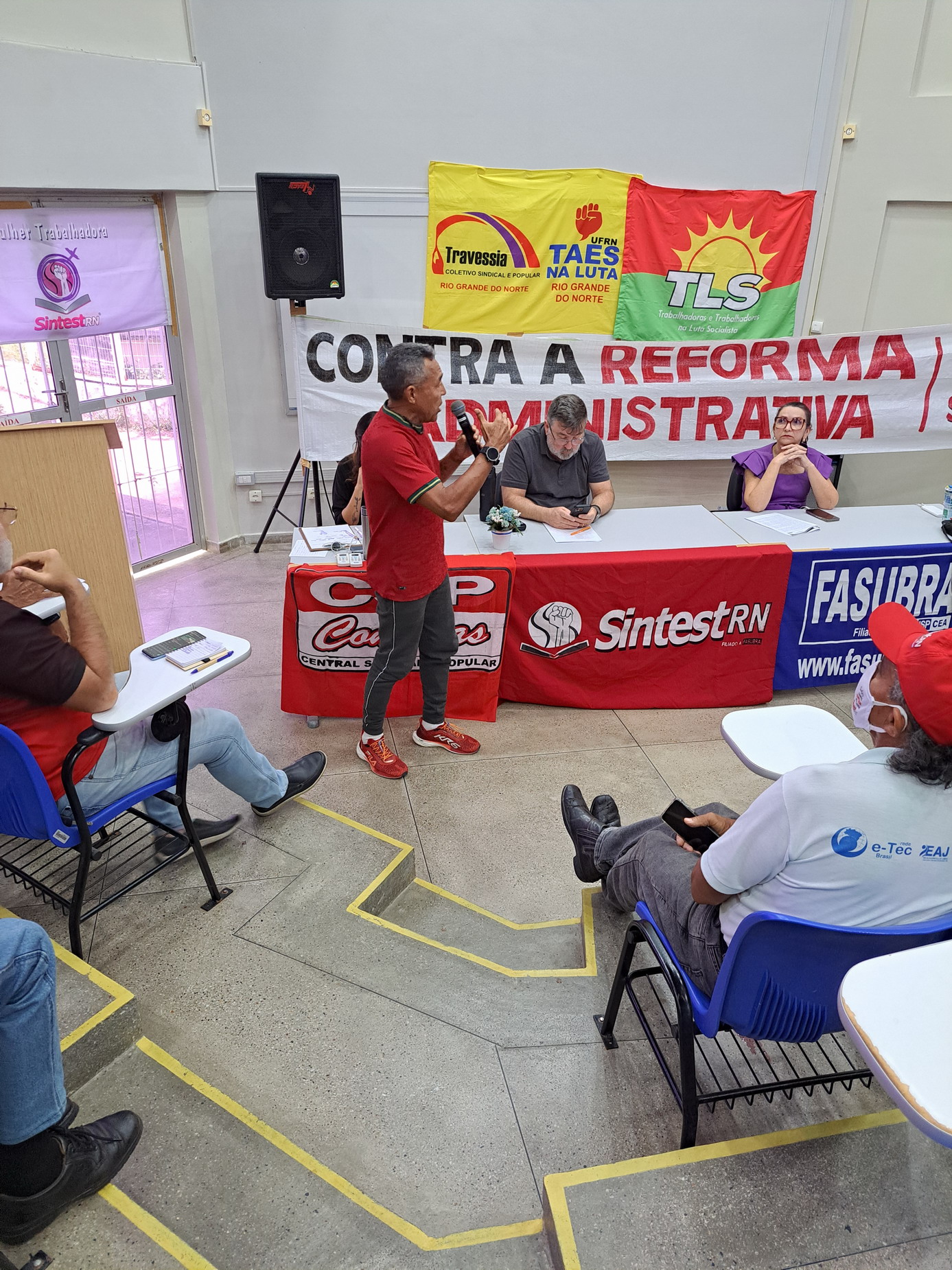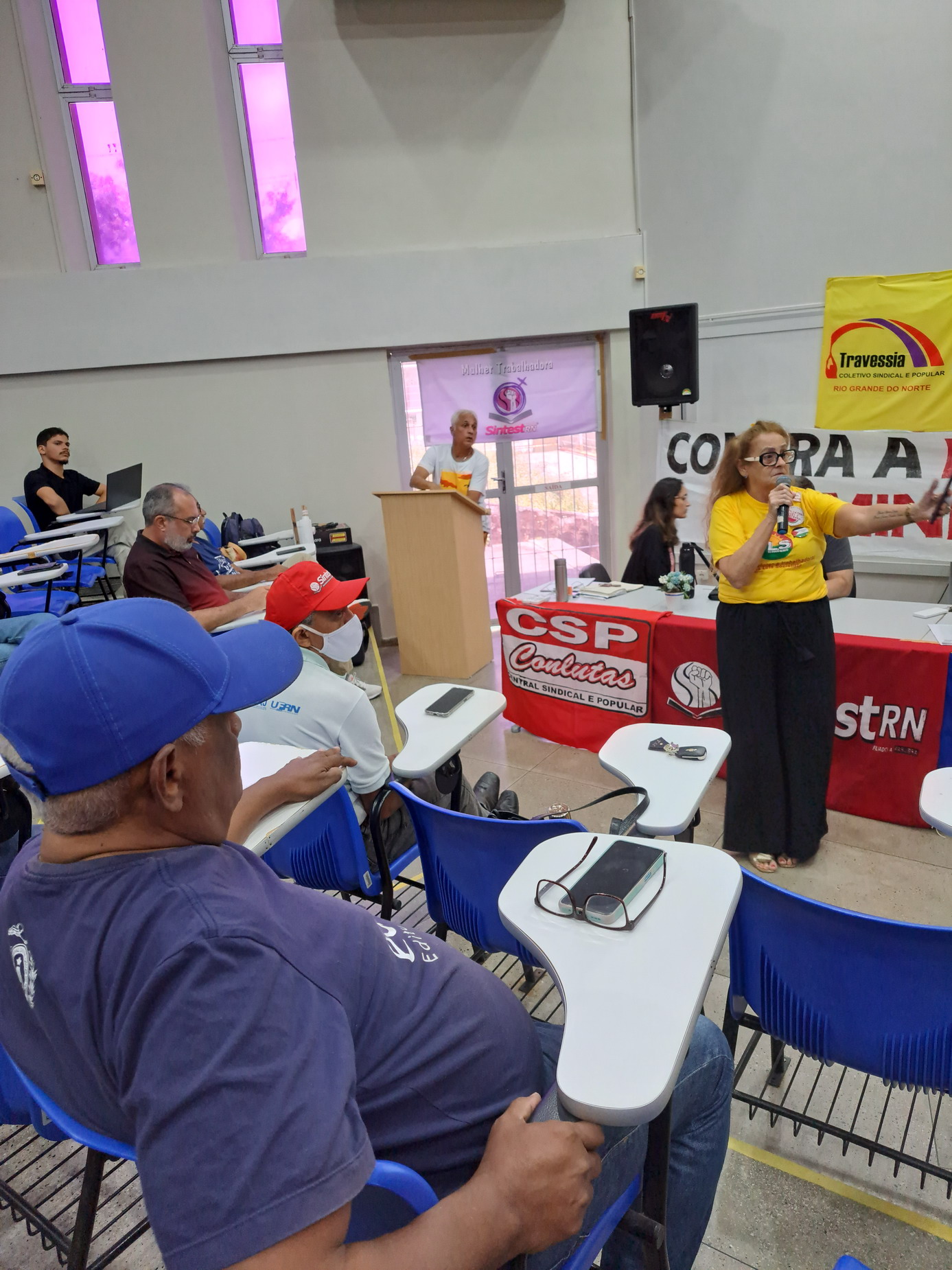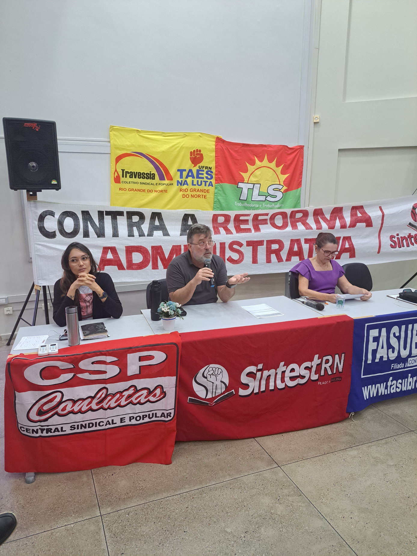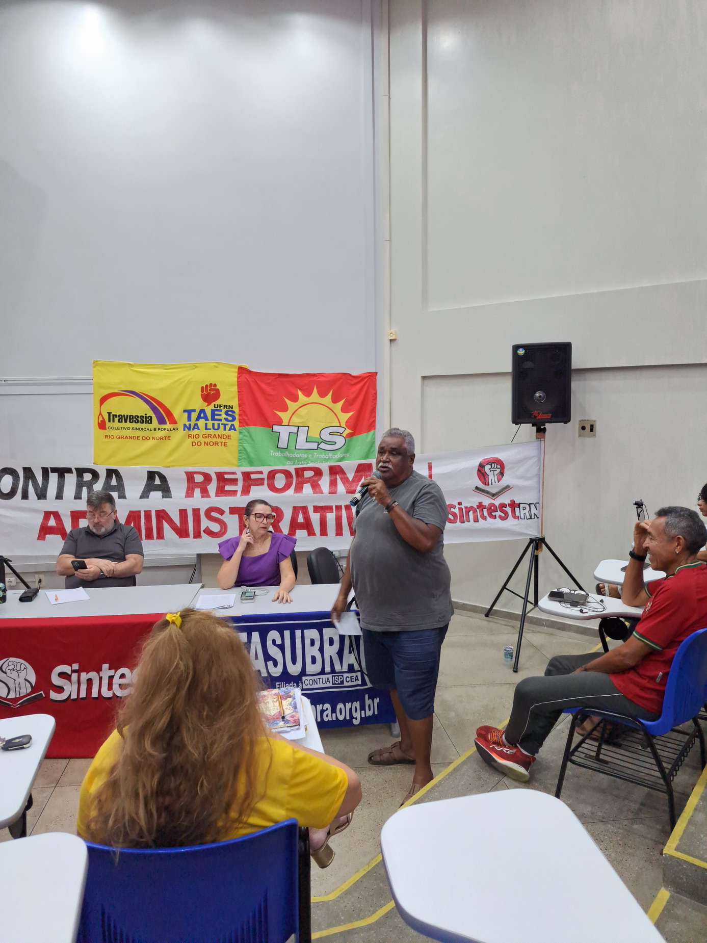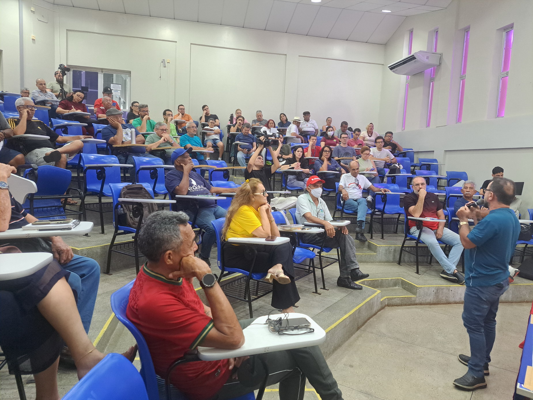 Durante a análise de conjuntura, foram apresentados diversos encaminhamentos. Entre os principais pontos, destacou-se o descumprimento de compromissos assumidos, como a regulamentação do RSC, a implantação da escala 12×60 e a aceleração para aposentados. Também foi ressaltada a necessidade de intensificar a mobilização nas bases e nos setores da UFRN.