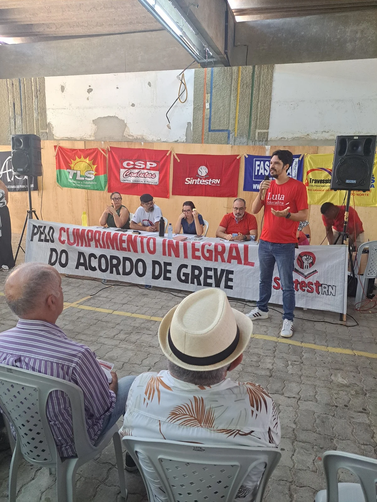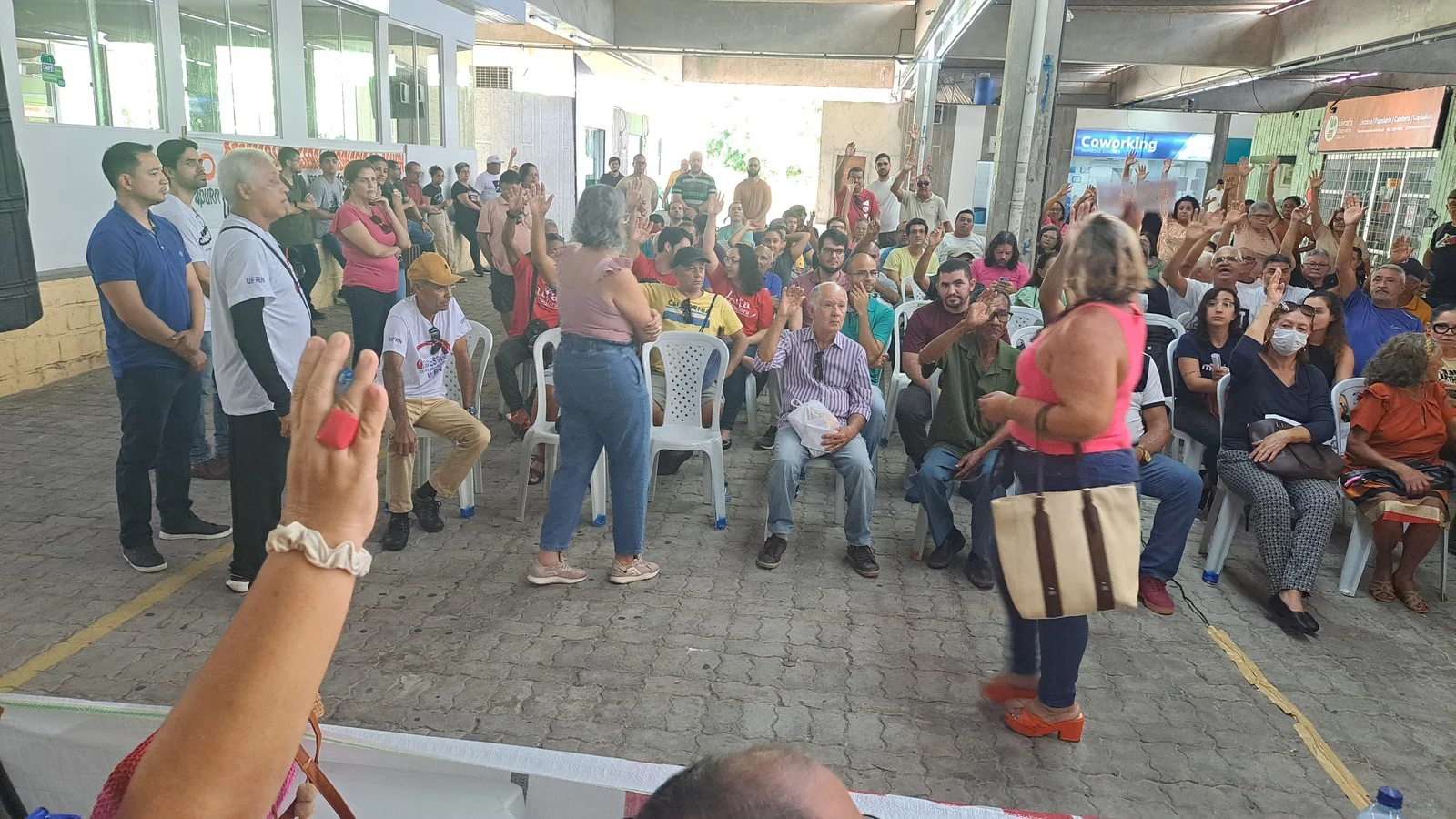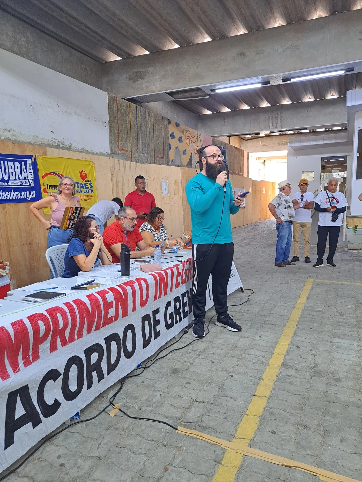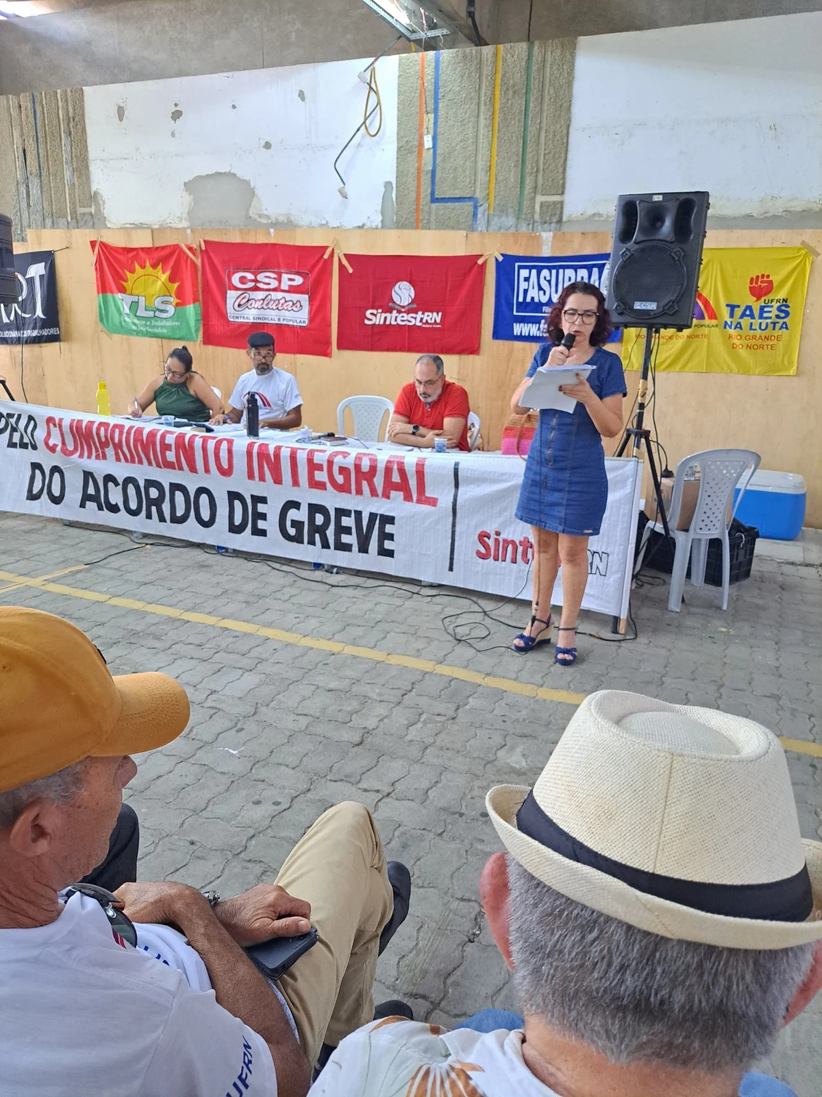 Durante os informes, foram destacados avanços como a confirmação da aceleração da progressão por capacitação pela PROGESP/UFRN e a convocação da FASUBRA para reunião do GT Nacional do PCCTAE no MGI, em 23 de maio, cuja pauta inclui a jornada de 30h, reposicionamento dos aposentados, regulamentação do plantão 12×60 e outras demandas da categoria.