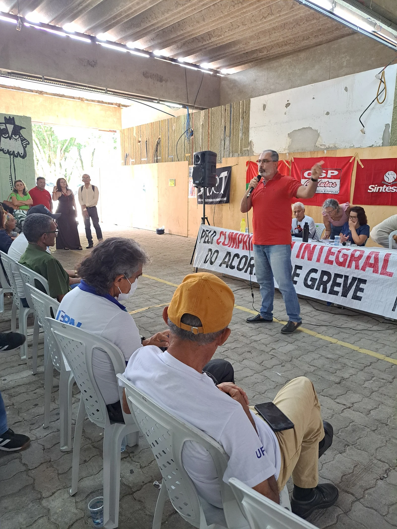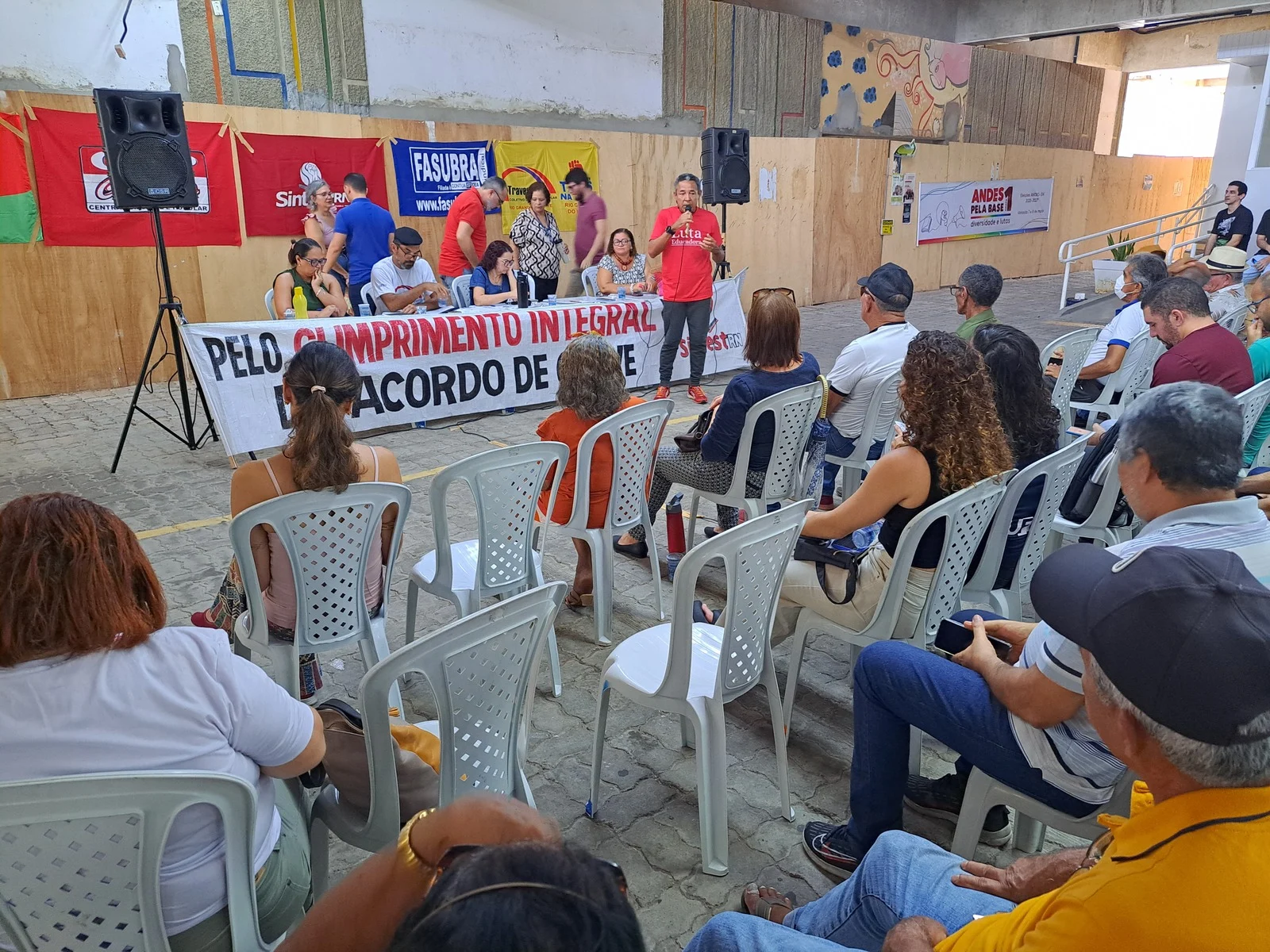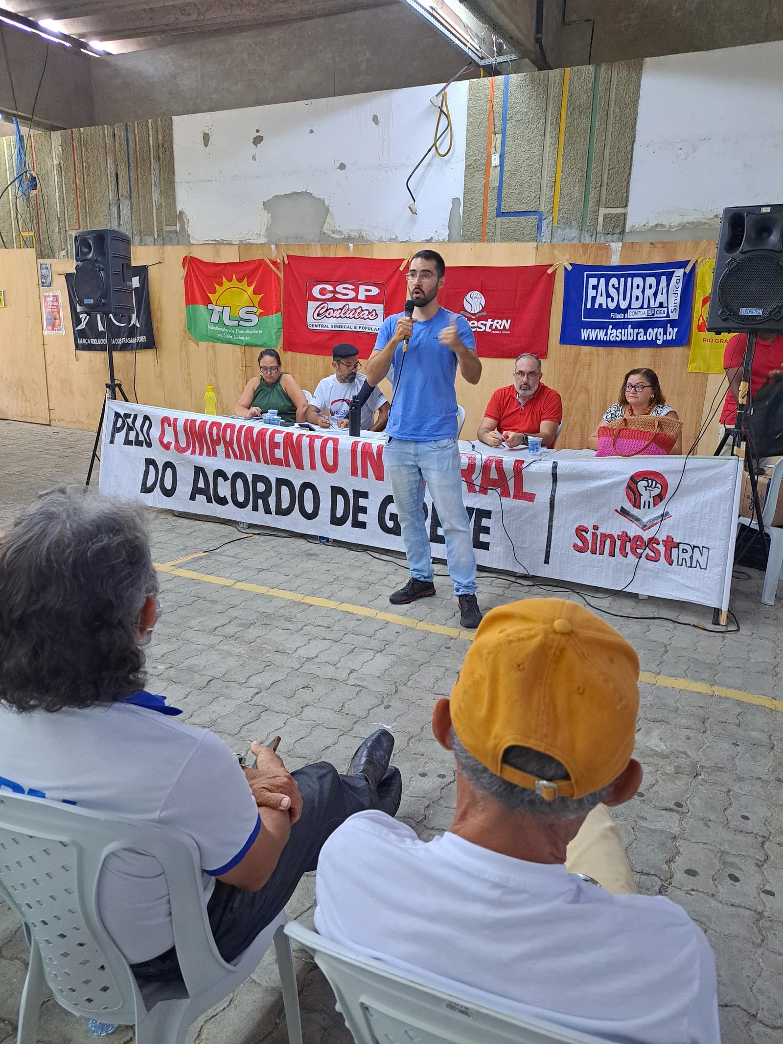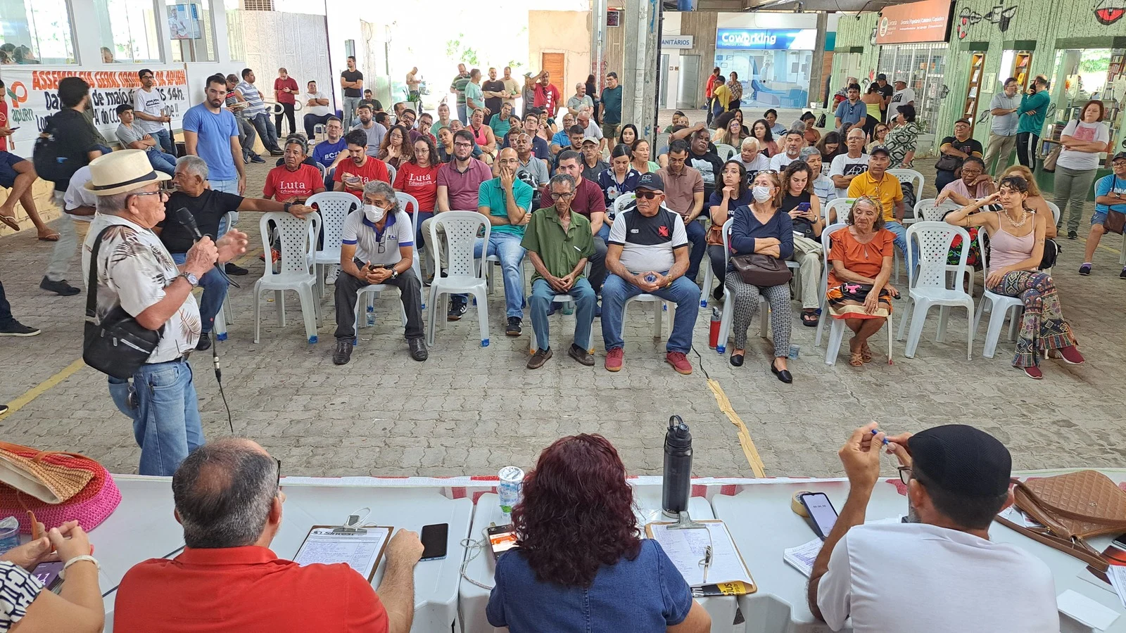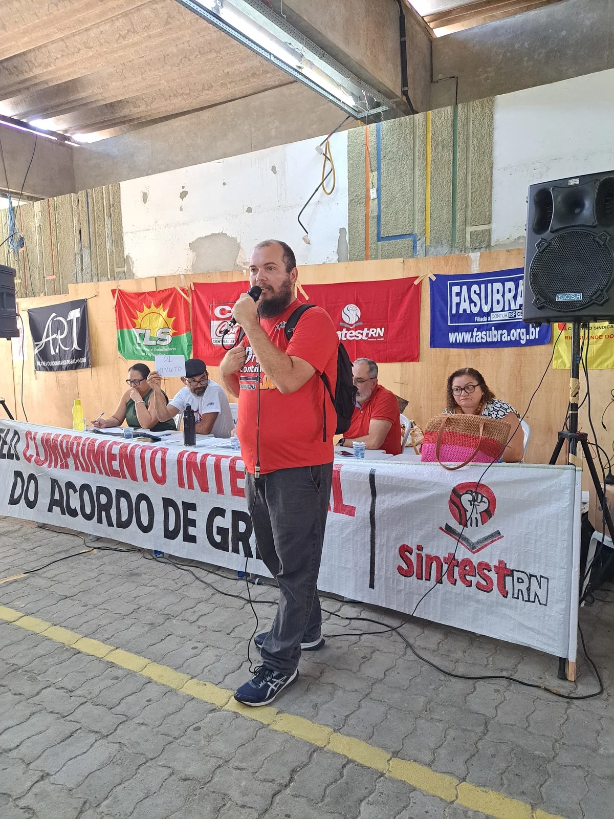 Durante os informes, foram destacados avanços como a confirmação da aceleração da progressão por capacitação pela PROGESP/UFRN e a convocação da FASUBRA para reunião do GT Nacional do PCCTAE no MGI, em 23 de maio, cuja pauta inclui a jornada de 30h, reposicionamento dos aposentados, regulamentação do plantão 12×60 e outras demandas da categoria.