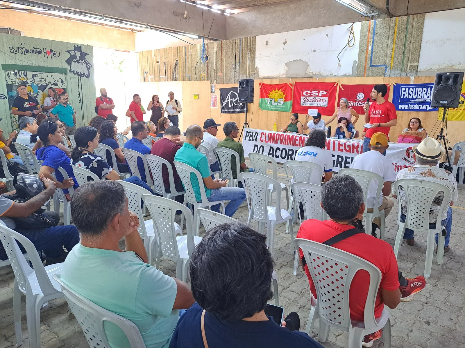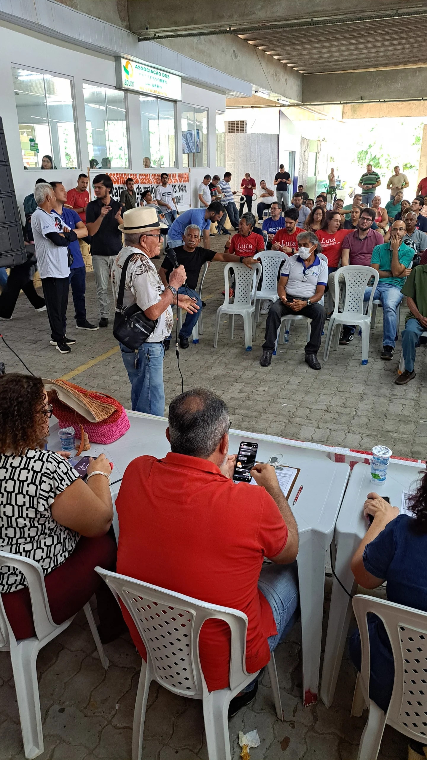 Na manhã desta segunda-feira (19), o SINTEST-RN realizou Assembleia Geral no Centro de Convivência da UFRN, com a presença de mais de 140 servidores técnico-administrativos. A principal deliberação foi a aprovação da paralisação de 48 horas nos dias 22 e 23 de maio, com atos públicos em ambos os dias.