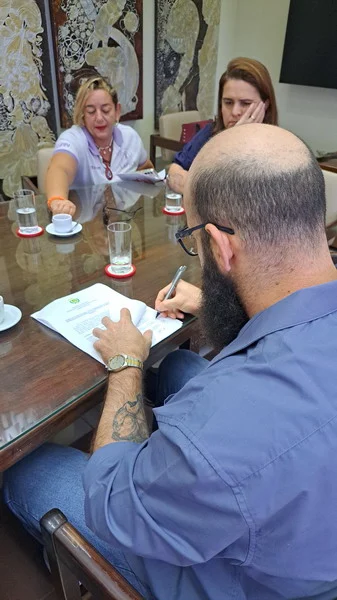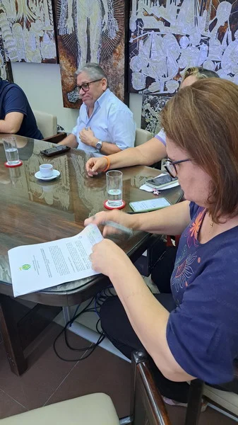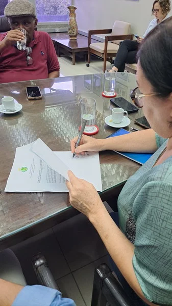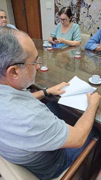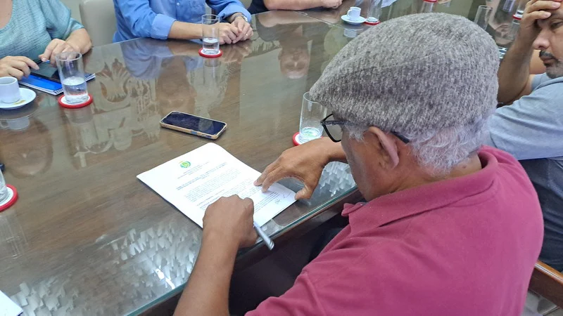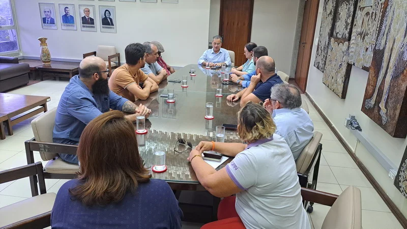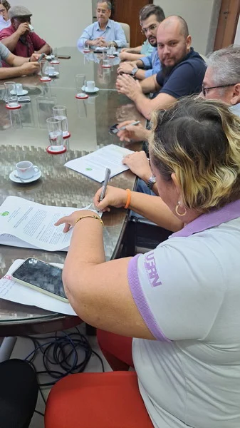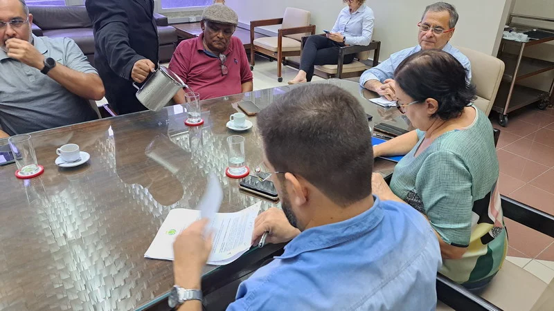 Na manhã desta quarta-feira, 03/07, no Gabinete do Reitor da UFRN, reuniram-se para discutir e assinar o Termo de Acordo de Greve a Comissão do SINTEST-RN formada para acompanhar a compensação do trabalho acumulado em decorrência da greve, o reitor em exercício, Henio Miranda, e representantes da Pró-Reitoria de Gestão de Pessoas (PROGESP).