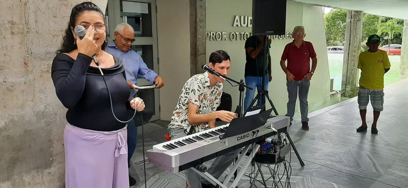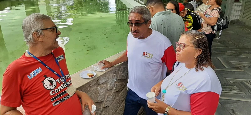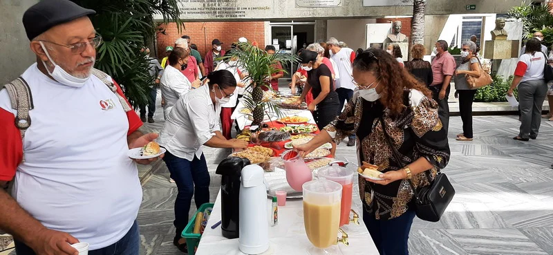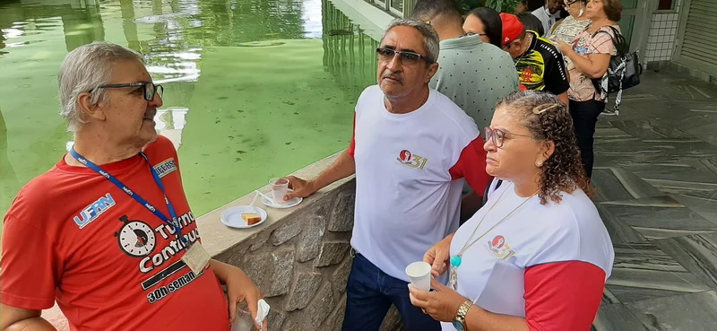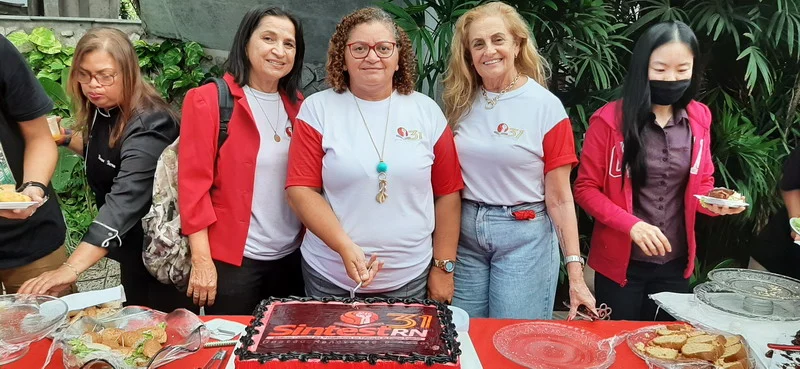Na última sexta-feira, 29 de abril, a direção do Sintest/RN reuniu a base para celebrar os 31 anos de entidade, com uma programação que reuniu atrações culturais, homenagens e seminários de mobilização no auditório da reitoria. Desde 12 de abril de 1991, quando foi fundado, o sindicato luta em defesa do serviço público, dos interesses do funcionalismo federal, dos TAEs, da sociedade brasileira de uma forma geral e da democracia.A programação teve início com um café da manhã servido no pátio da reitoria que contou com a apresentação musical do cantor e tecladista Rafael Angelo acompanhado, Leonel Marques, e Gerlane que fazem parte do projeto Cantarte – grupo da Escola de Música da UFRN, formado por professores e servidores da Universidade.