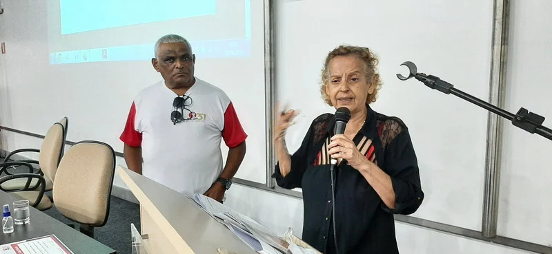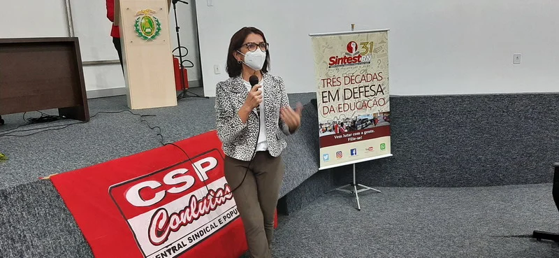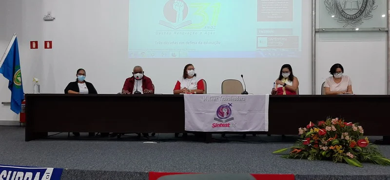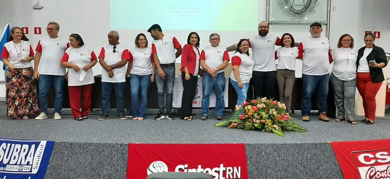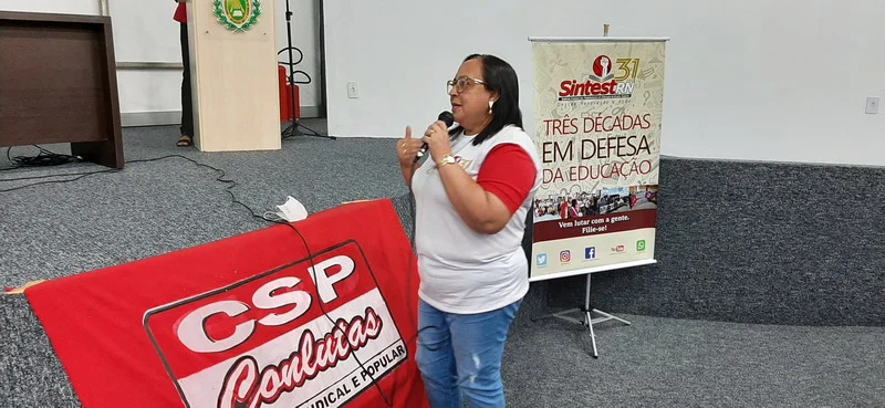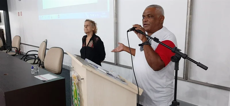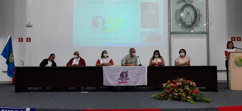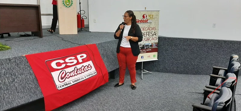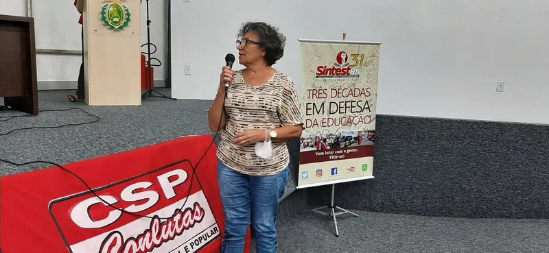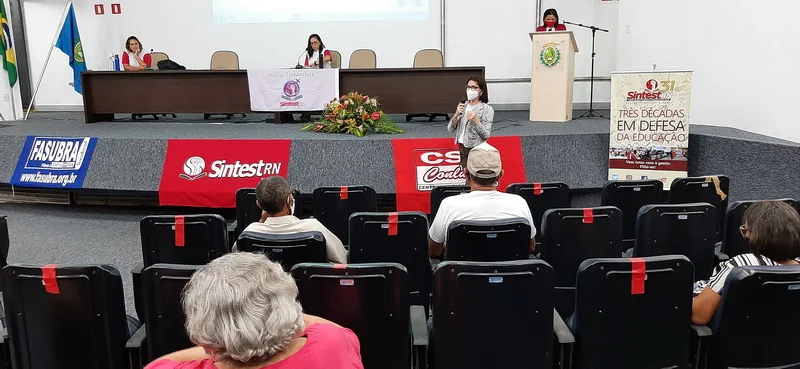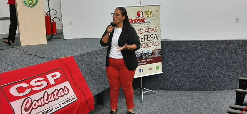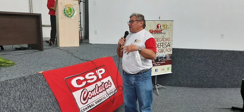 Após ser desfeita a mesa o evento seguiu com a apresentação de um vídeo com o histórico de lutas da entidade e uma palestra do dirigente da entidade Viktor Gruska, que falou sobre “Estrutura, função política e desafios para o Sintest/RN” e encerrou a programação matutina do evento, que retornou às 14h.