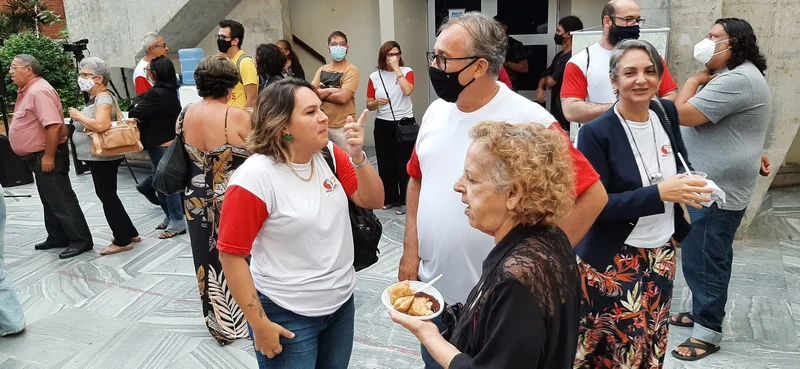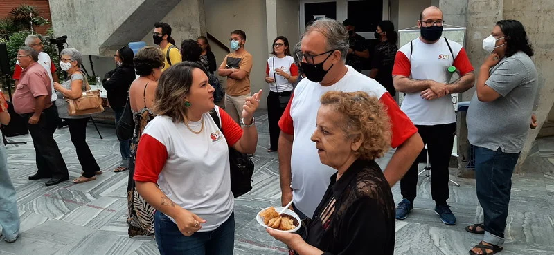 Kaliane e Edson em suas falas além de celebrar a existência do Sintest e suas vitórias, destacaram a atuação do sindicato mesmo em um período pandêmico, lutando para garantir condições de trabalho a todos e todas. Cacau agradeceu a presença de todos e junto com Aparecida destacou as presenças do presidente da ADURN, professor Oswaldo Negrão e da representante do DCE da UFRN Camila Barbosa.