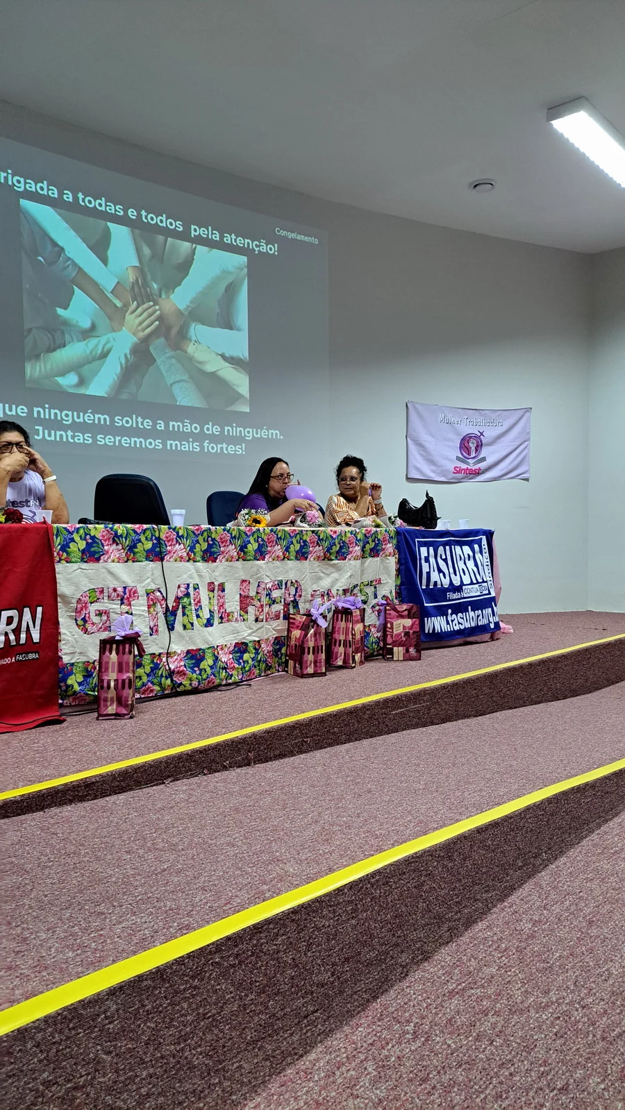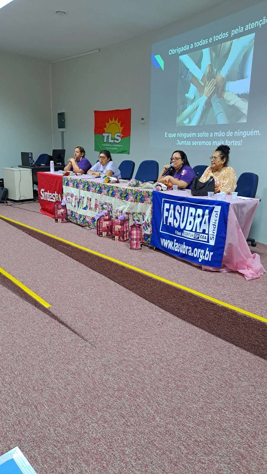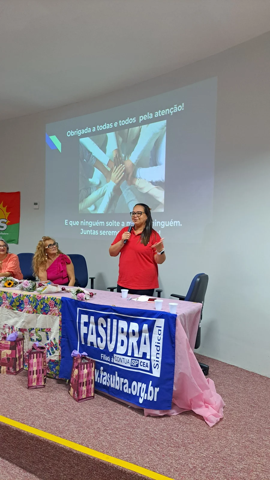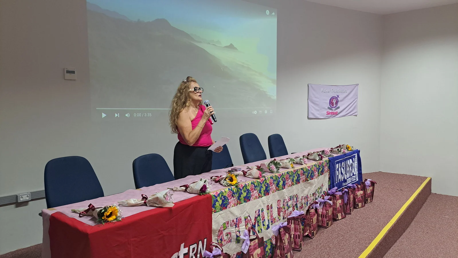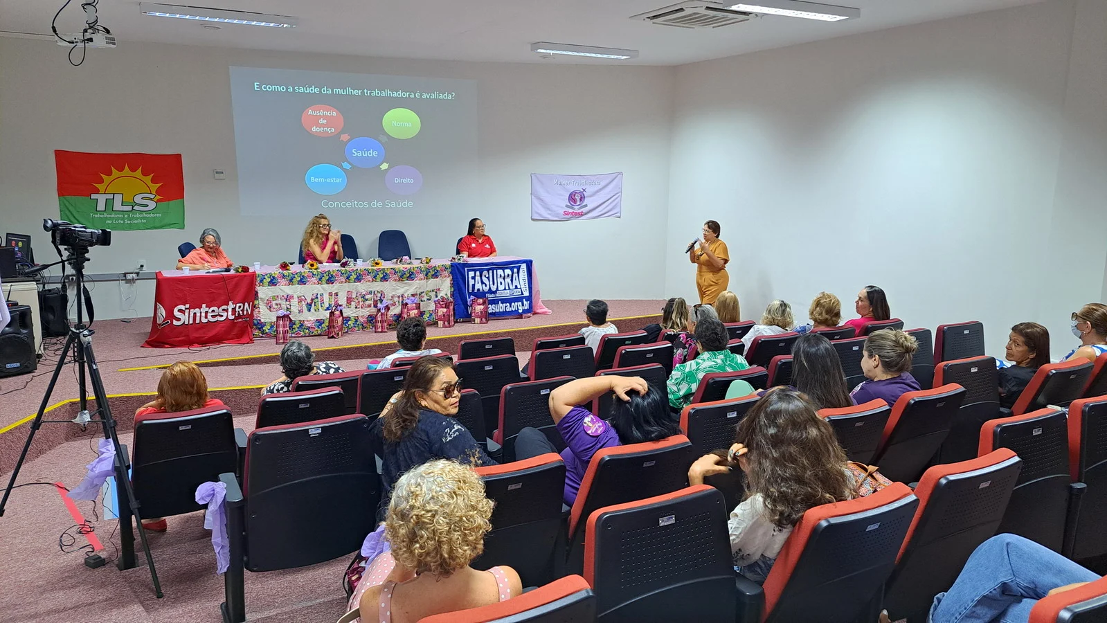 Após o almoço, a programação seguiu durante a tarde com palestras da psicóloga Maria Teresa Pires Costa (Docente da área de Gestão de Pessoas do Departamento de Administração Pública. Psicóloga, Mestre em Administração, Doutora em Psicologia com Pós-Doc em Psicologia da Saúde. Estuda a Saúde Mental no Trabalho e as Condições de Trabalho) que falou sobre “Saúde mental e adoecimento das mulheres nos espaços de trabalho”. Em seguida, Tházia Maria de Almeida Maia, Coordenadora da Mulher Trabalhadora do SINTEST-RN realizou uma Roda de conversa, dinâmicas em grupo e sorteio de brindes.
