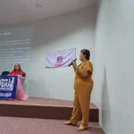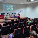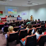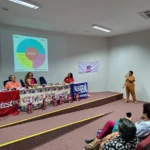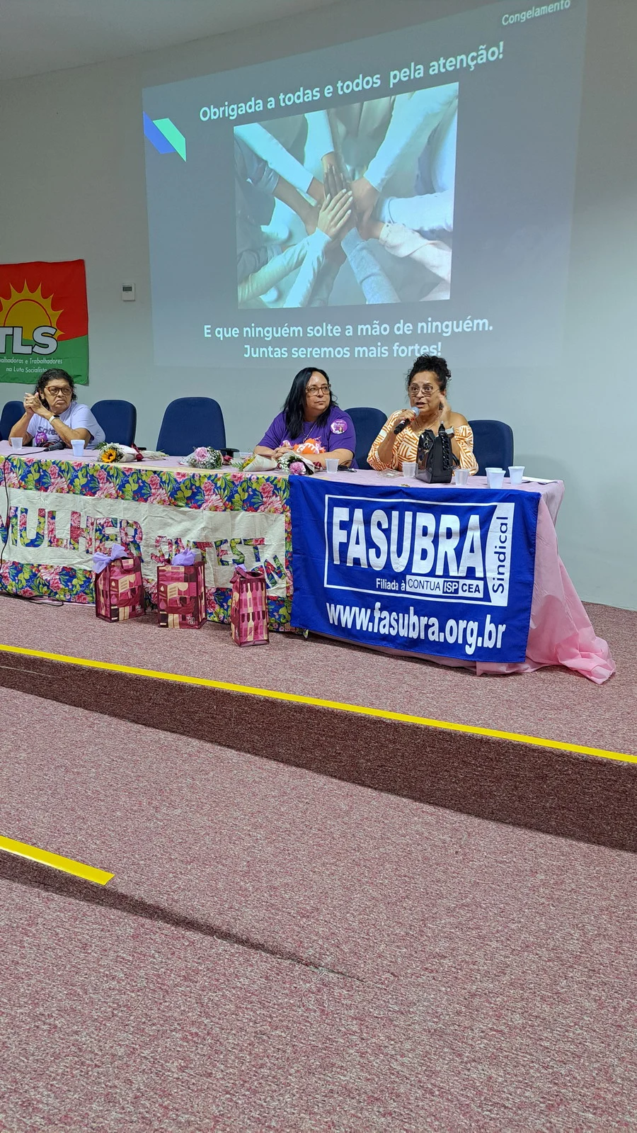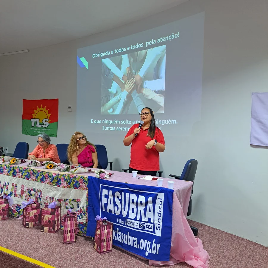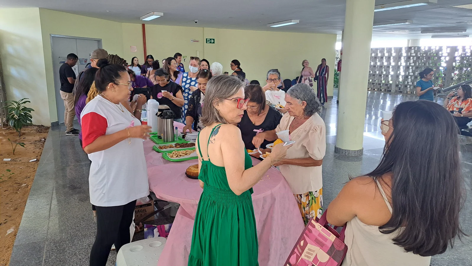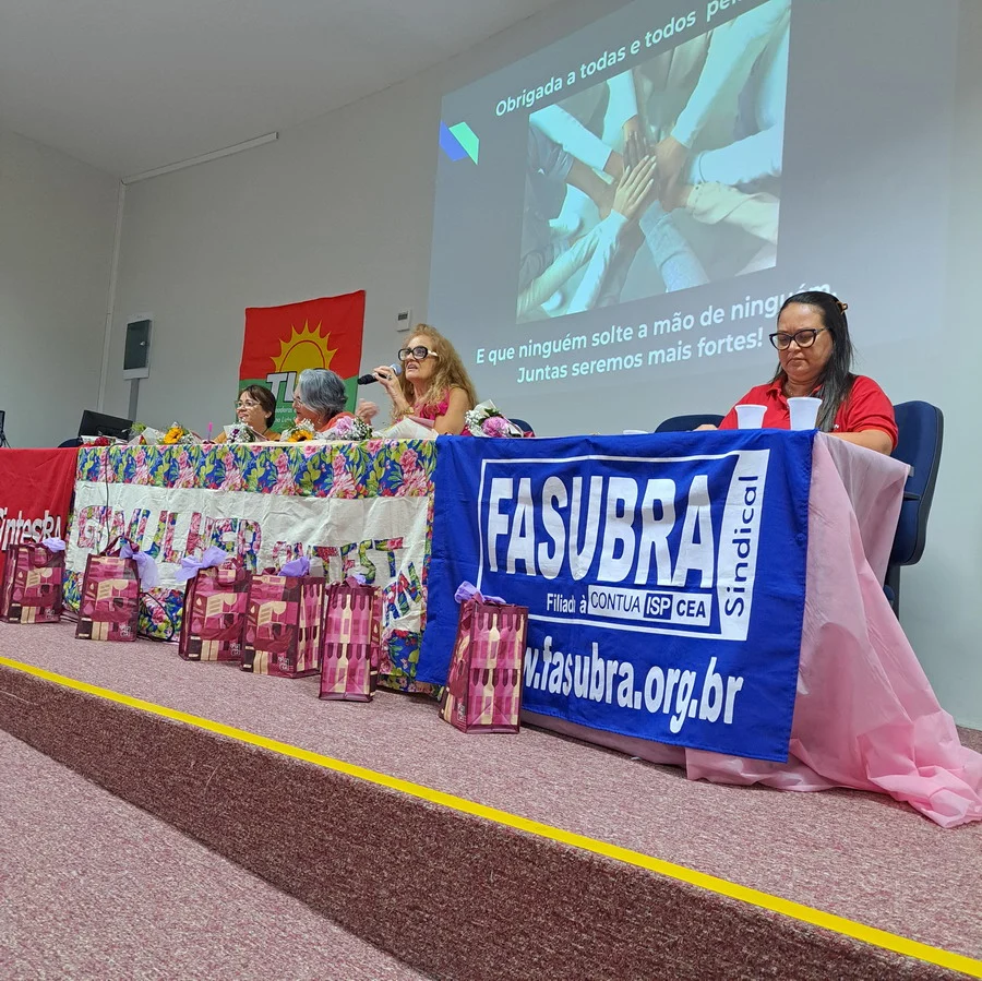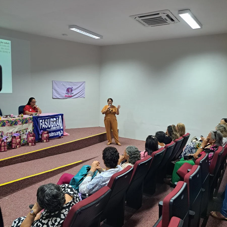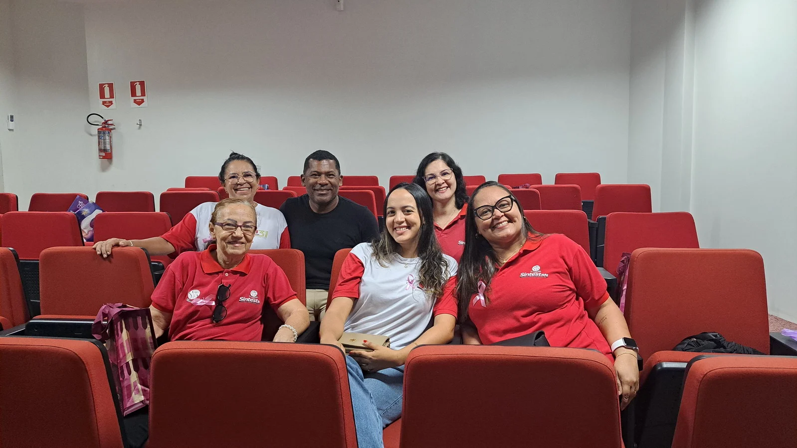Após o almoço, a programação seguiu durante a tarde com palestras da psicóloga Maria Teresa Pires Costa (Docente da área de Gestão de Pessoas do Departamento de Administração Pública. Psicóloga, Mestre em Administração, Doutora em Psicologia com Pós-Doc em Psicologia da Saúde. Estuda a Saúde Mental no Trabalho e as Condições de Trabalho) que falou sobre “Saúde mental e adoecimento das mulheres nos espaços de trabalho”. Em seguida, Tházia Maria de Almeida Maia, Coordenadora da Mulher Trabalhadora do SINTEST-RN realizou uma Roda de conversa, dinâmicas em grupo e sorteio de brindes.
