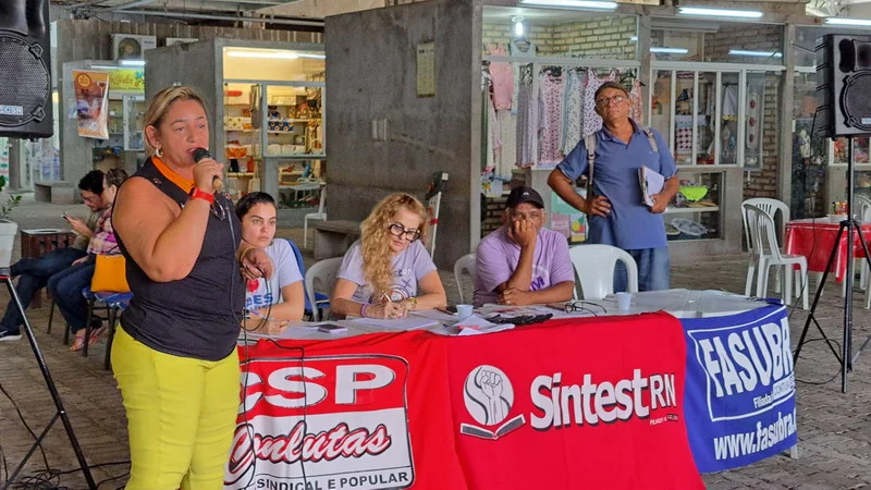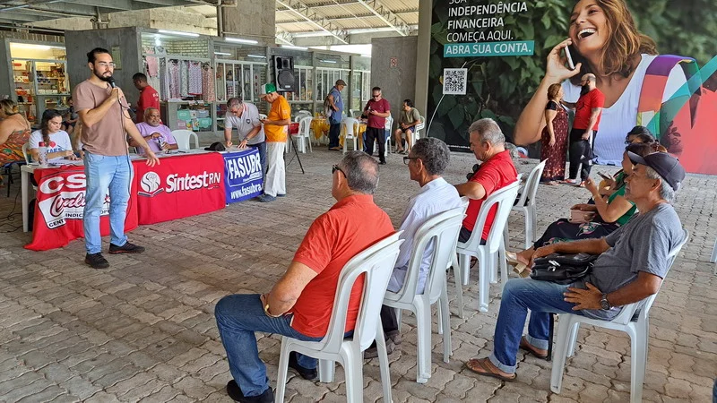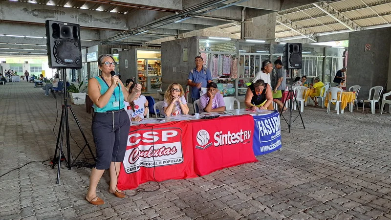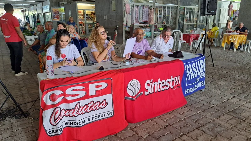 O Sintest/RN realizou uma Assembleia Geral da categoria na manhã desta segunda-feira, 27/11, no Centro de Convivência da UFRN para votar sobre a Paralisação do dia 28/11 como Dia Nacional de Luta, chamada pelas entidades que compõe o Fórum das Entidades Nacionais dos servidores Públicos Federais (FONASEFE) e ainda eleger os delegados à Plenária da Fasubra.A assembleia aprovou a Paralisação para o dia 28/11, em defesa da recomposição salarial, da melhoria na carreira do PCCTAE e contra o Arcabouço Fiscal, que será um dia marcado por mobilizações, atos, panfletagem e assembleias de bases nos diversos estados do país.