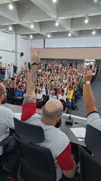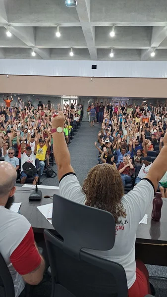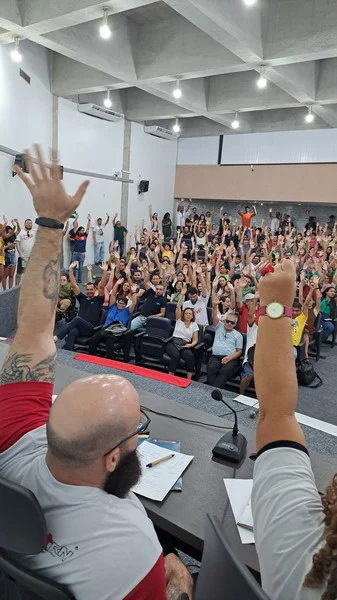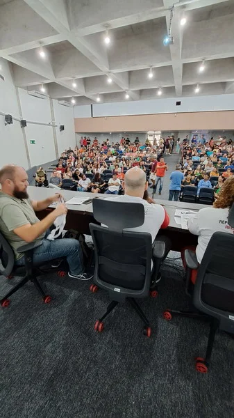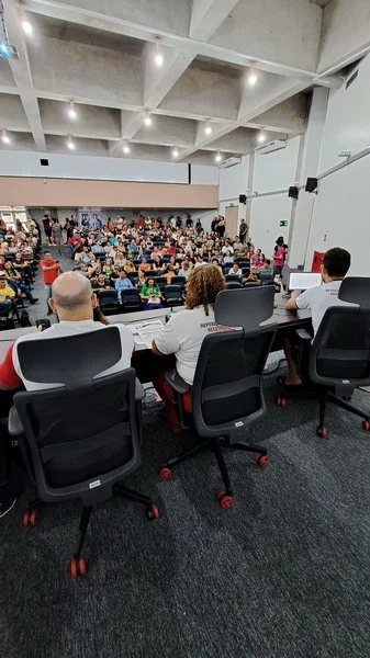 Mai uma vez o auditório da reitoria ficou lotado, com mais de 520 TAEs presentes, além de estudantes, representantes de outras entidades como a CSP Conlutas e o prof. Robério Paulino (vereador pelo PSOL). Vale salientar que a greve está ganhando mais força, especialmente com a adesão dos docentes da UFRN ao movimento grevista a partir do da 22/04.
