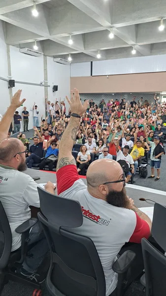 O SINTEST-RN e o Comando Local de Greve realizaram mais uma assembleia geral dos servidores técnico-administrativos da UFRN, na manhã desta quarta-feira, 17/04.