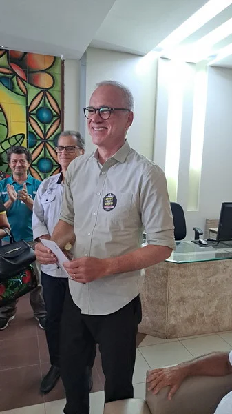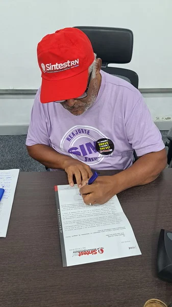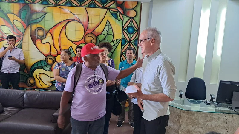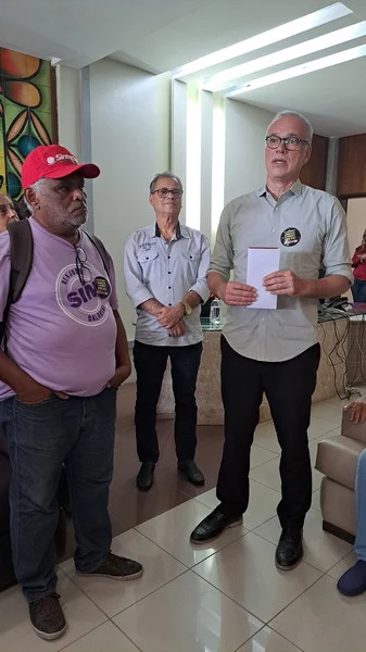 Edson Lima, Coordenador Geral do SINTEST-RN, entrega documento oficializando a decisão da categoria em deflagrar a greve