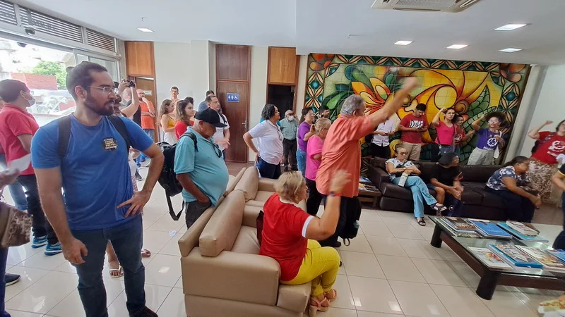 Tão logo a assembleia se encerrou, a direção do SINTEST-RN juntamente com uma comitiva de servidores se dirigiram ao gabinete do reitor e fizeram a entrega do ofício comunicando ao professor Daniel Diniz, a decisão unânime da assembleia.