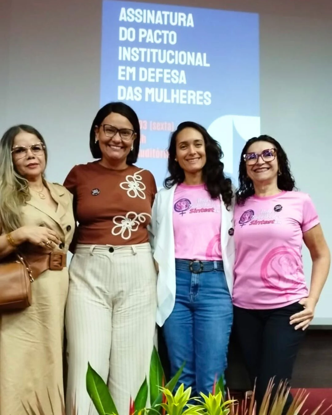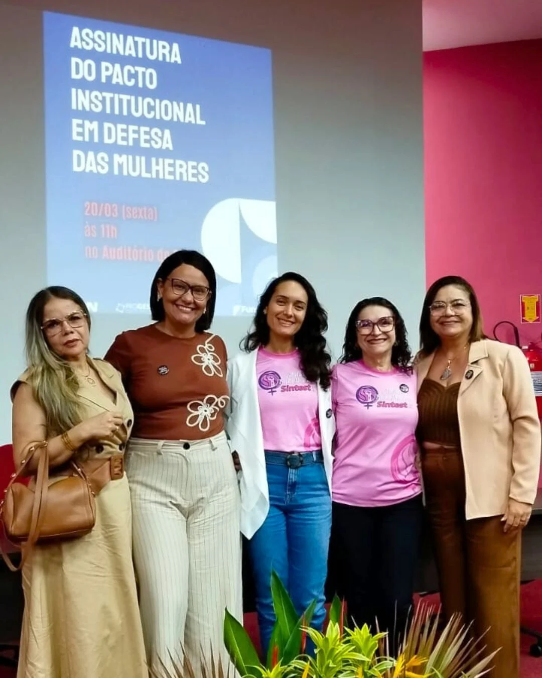 O SINTEST-RN esteve presente na atividade, reforçando o papel da categoria na construção e no acompanhamento de políticas institucionais voltadas à equidade de gênero. Participaram do ato a coordenadora geral, Celita Pessoa, a coordenadora de Administração e Patrimônio, Érika Galvão, e as coordenadoras da Mulher Trabalhadora, Rogéria Pereira e Gislaine Araújo.