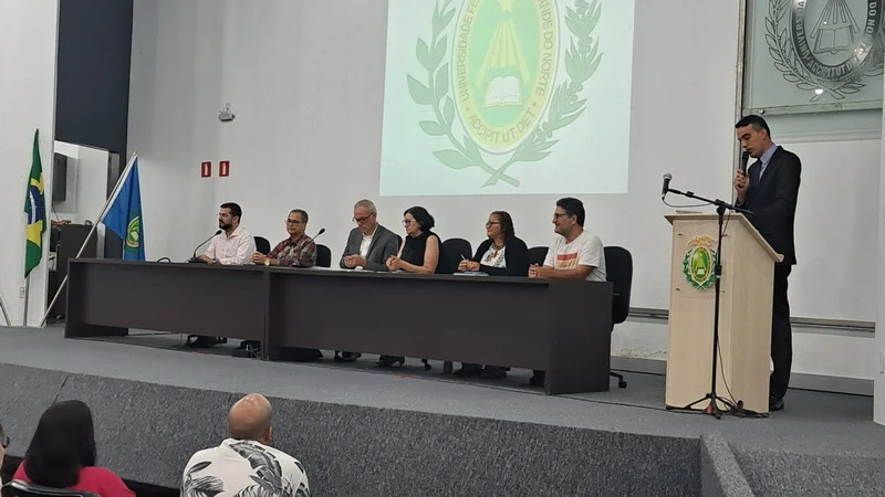 A solenidade aconteceu no auditório Otto de Brito Guerra (Auditório da Reitoria) e contou com a presença do Magnífico reitor da UFRN, Prof. Daniel Diniz, o Vice-reitor Prof. Henio Ferreira, a Pró-reitora de Gestão de Pessoas, Mirian Dantas, o Pró-reitor adjunto da Progesp, Joade Cortez, a Coordenadora Geral do SINTEST/RN, Aparecida Dantas e o presidente do Sindicato dos Professores da UFRN (ADURN-Sindicato), Oswaldo Negrão.