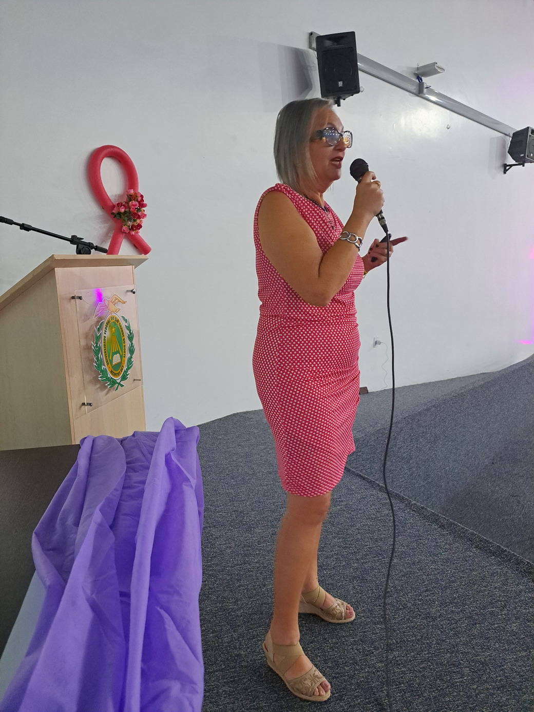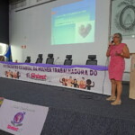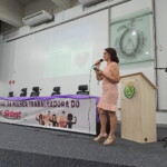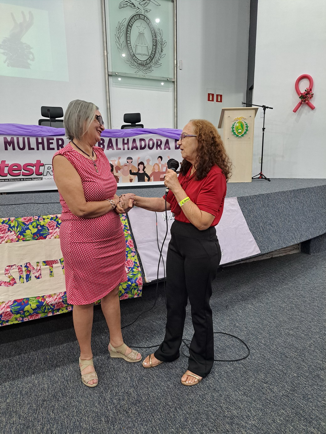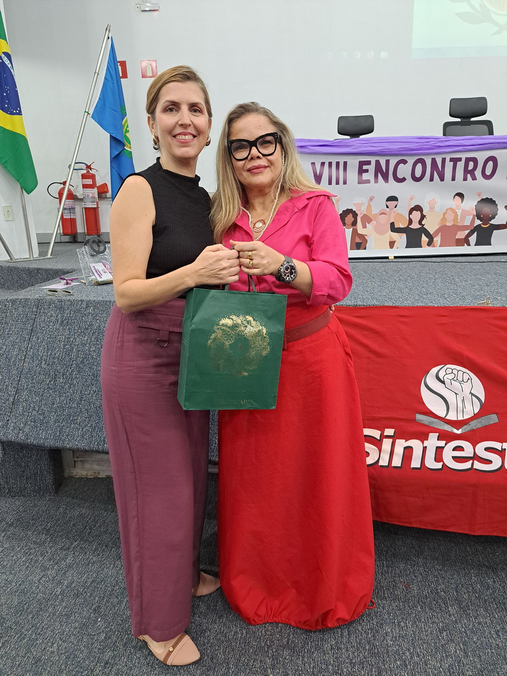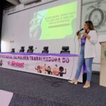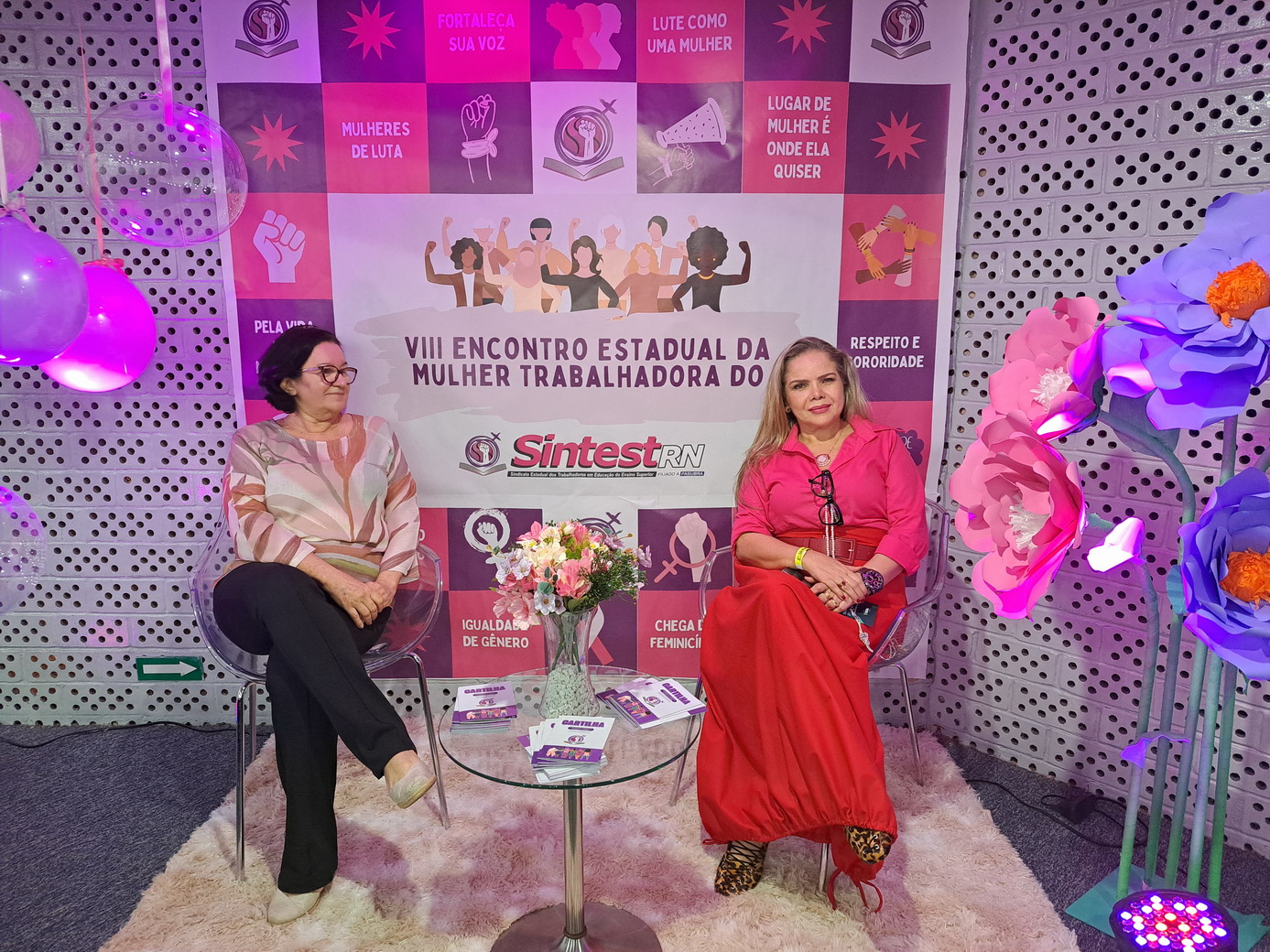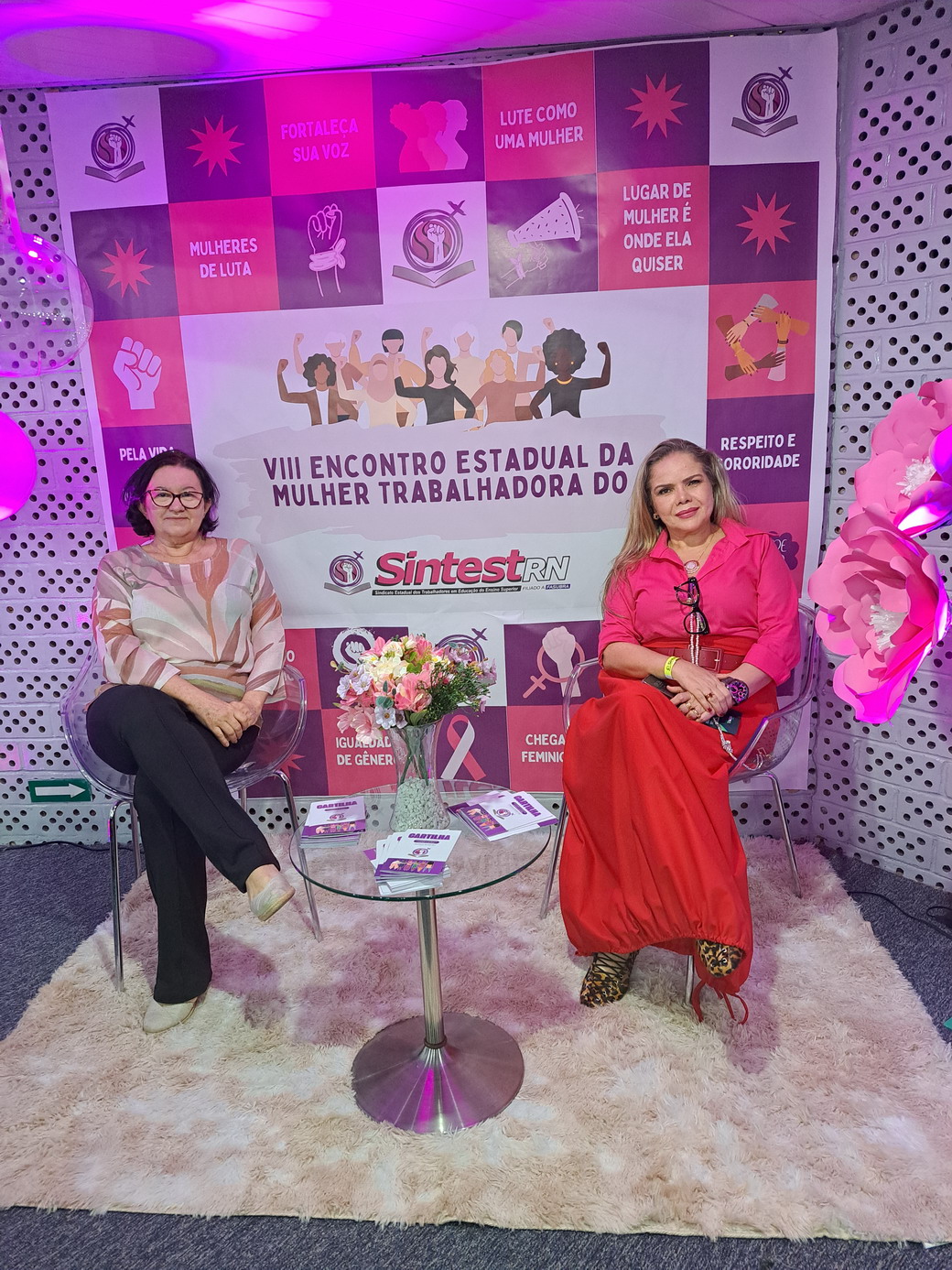 A tarde começou com a palestra “O que não vira palavra, vira sintoma!”, ministrada por Áurea Silva, enfermeira, mestre em Gestão Pública e coordenadora de Finanças do SINTEST-RN. O momento promoveu uma profunda reflexão sobre a escuta ativa e o acolhimento emocional, estimulando o compartilhamento de experiências entre as participantes.