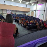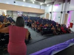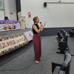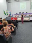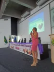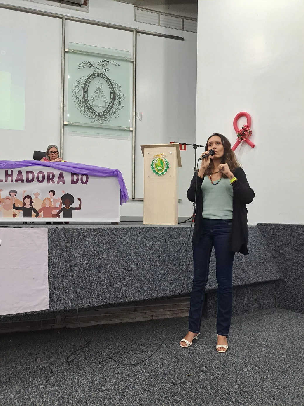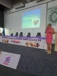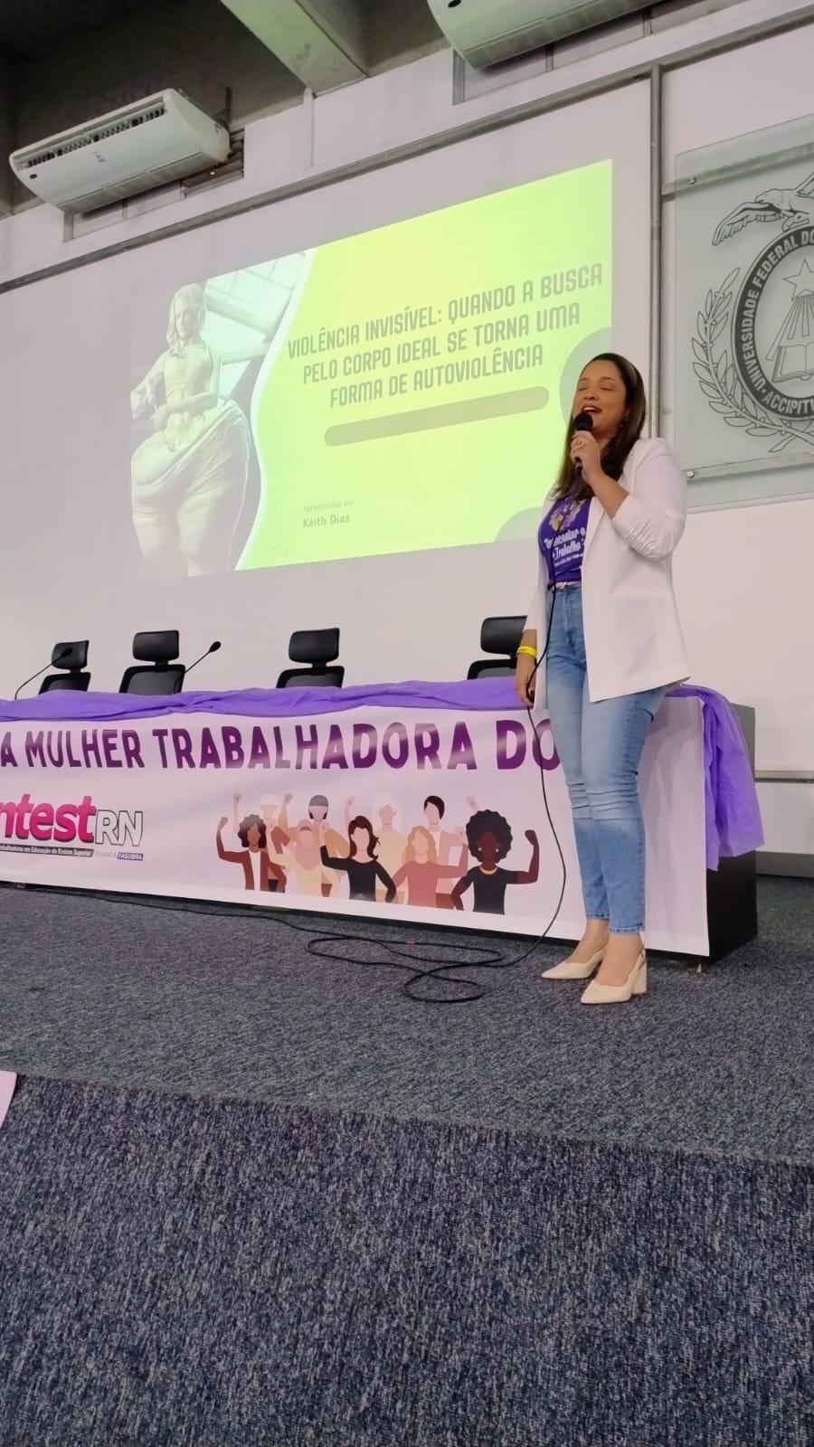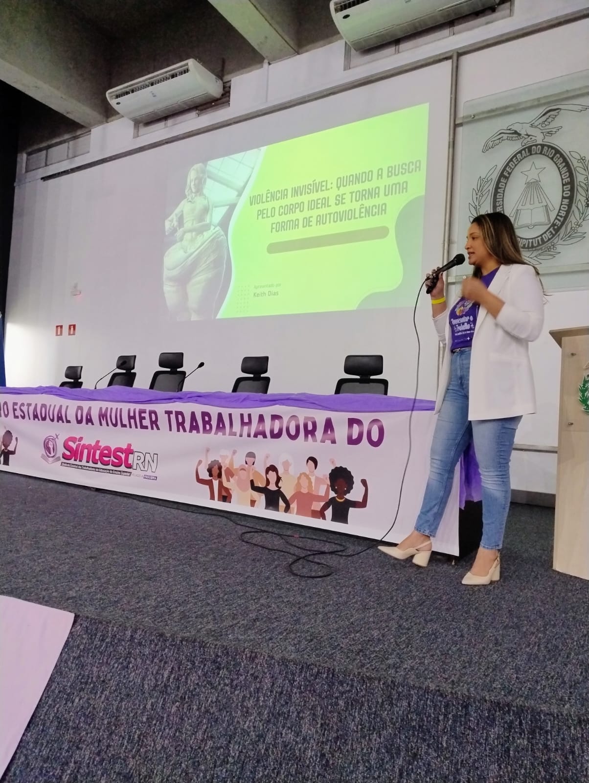 A programação teve início às 8h, com acolhimento e café da manhã, seguido da abertura oficial às 9h. Em seguida, a Mestre em Nutrição Keith Dias ministrou a palestra “Violência invisível: quando a busca pelo corpo ideal se torna uma forma de autoviolência”. A palestrante abordou a pressão estética imposta às mulheres e destacou a importância da aceitação corporal e do autocuidado.