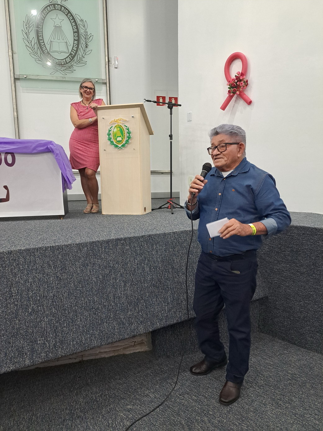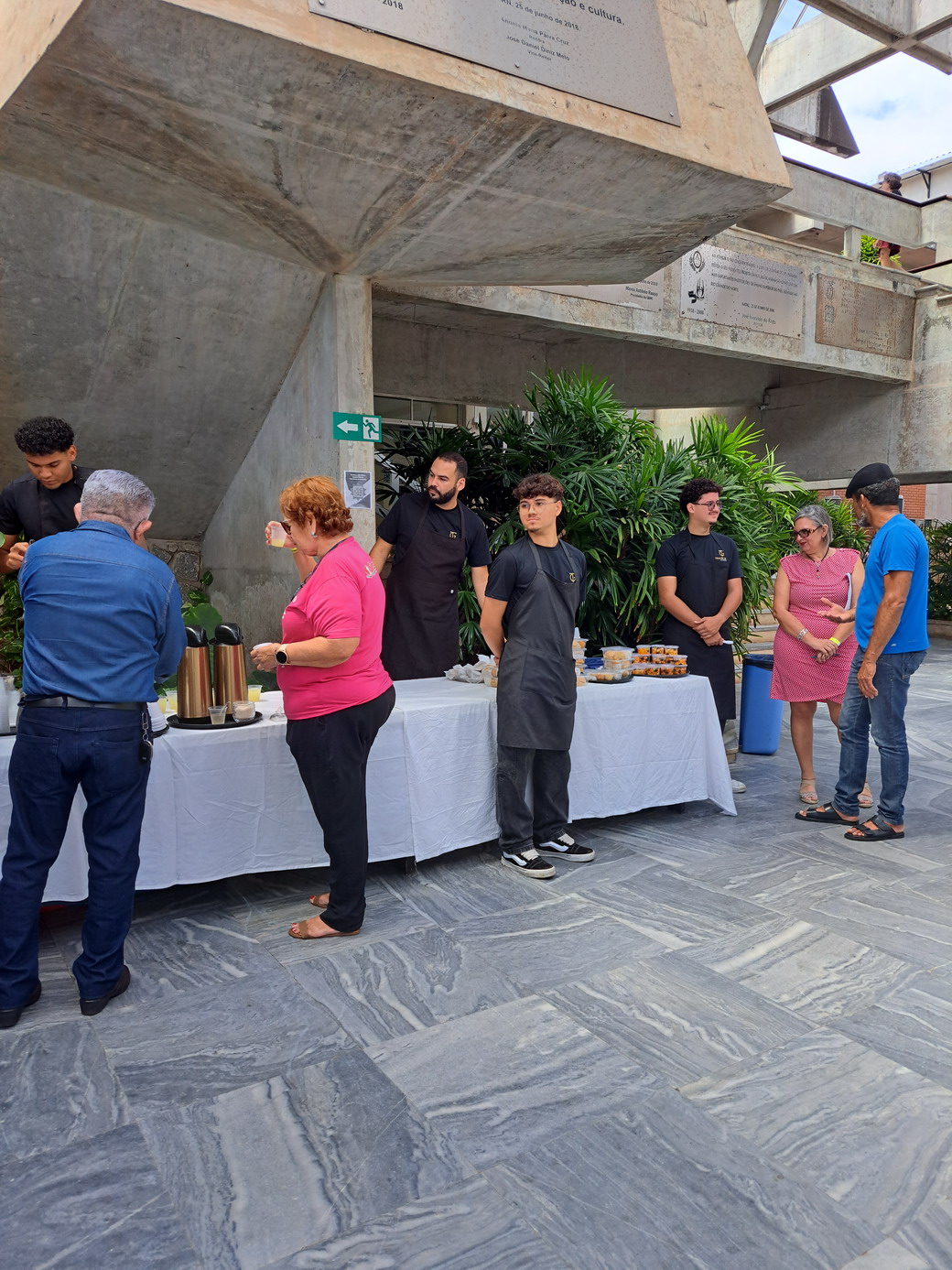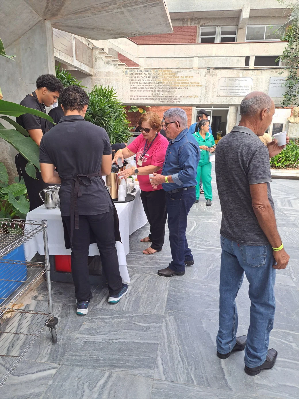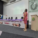 Encerrando a manhã, a Delegada e Secretária da Mulher e Minorias do Município de Extremoz (RN), Sheila Freitas, apresentou a palestra “A segurança pública e a proteção da mulher”, trazendo dados preocupantes sobre a violência de gênero, além de relatar políticas públicas e estratégias de enfrentamento. O período matutino foi finalizado com um almoço na Praça do Servidor, na Reitoria da UFRN — um ambiente agradável, ventilado e cercado por árvores.
