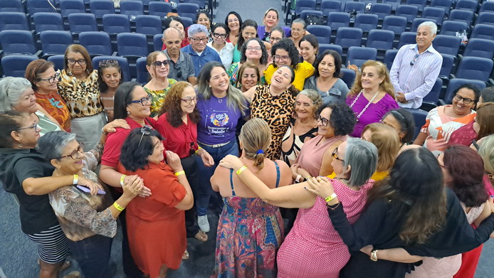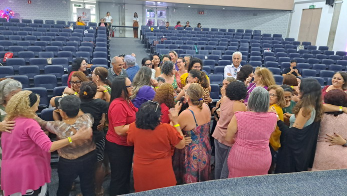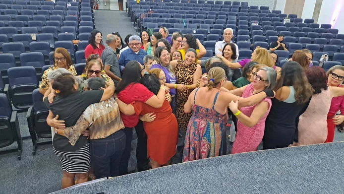 Antes do encerramento, as participantes desfrutaram de um lanche com música ambiente e um bolo comemorativo. A programação foi finalizada com uma roda de conversa conduzida pela psicóloga e arteterapeuta Luciana Silveira, que utilizou a arte e a música como ferramentas de expressão e leveza emocional.